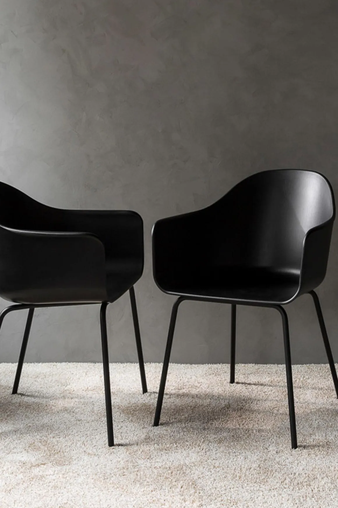 klassisk og minimalistisk formspråk som balanserer geometri og organiske former på en skandinavisk og stilren måte. Stolen passer godt rundt spisebordet da den er liten og nett. De høye ryggen gjør stolen svært komfortabel og god å sitte i – perfekt for late frokoster og gode samtaler rundt middagsbordet.
