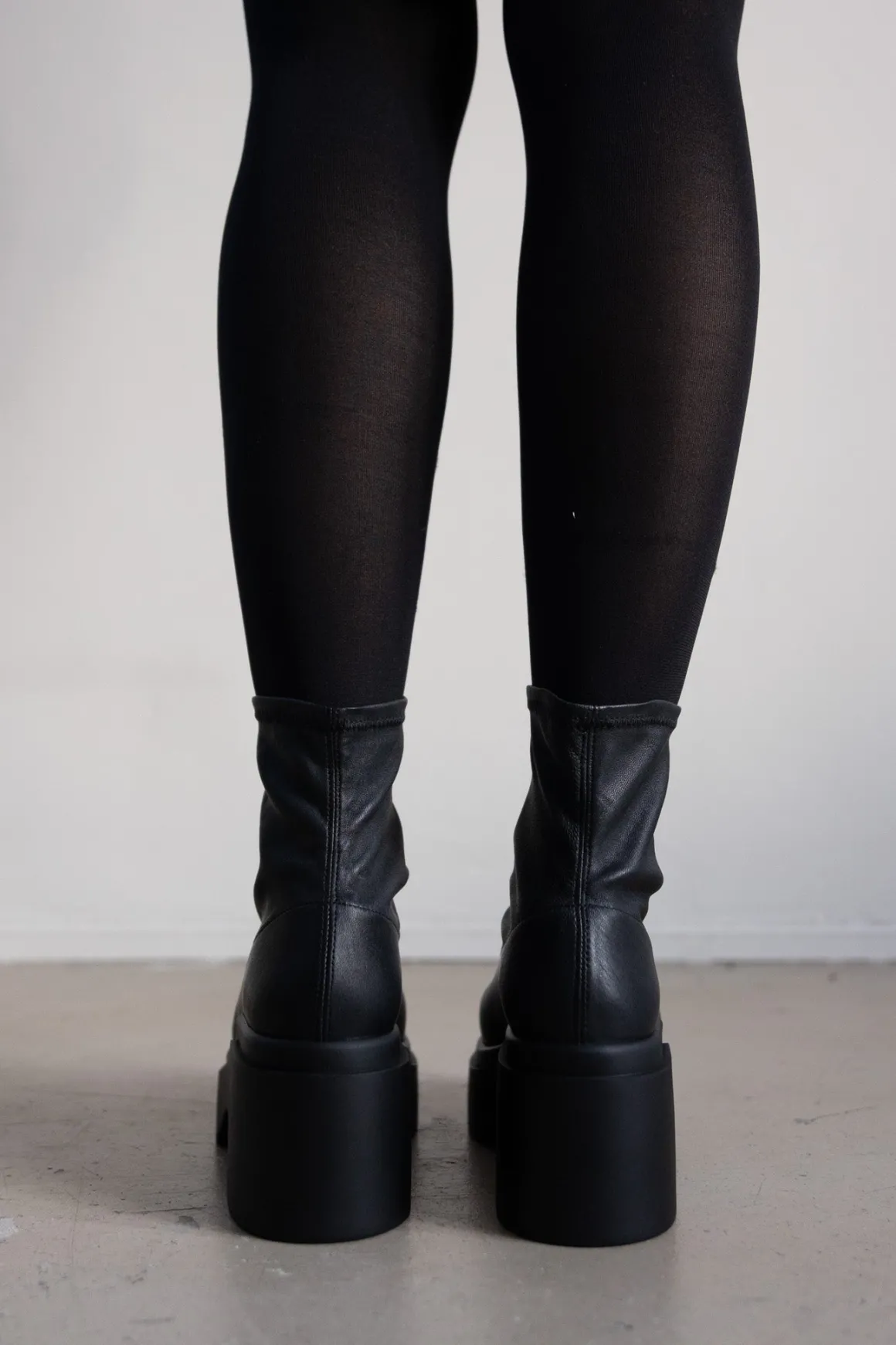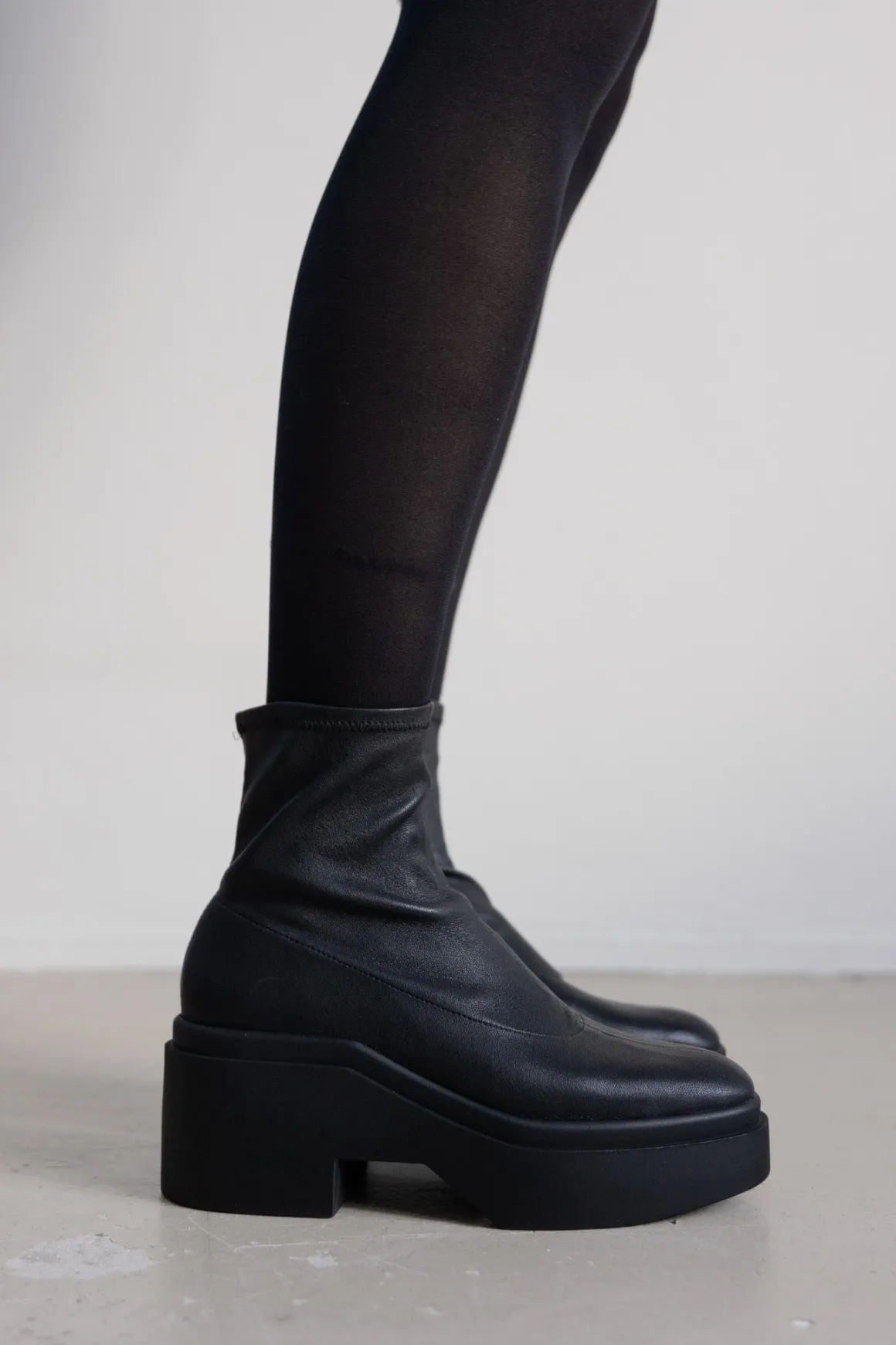 Ankelstøvletter i sort fra franske Clergerie. Nelle skiller seg ut med stilen til sålen som forenes i ett med hælen, og som overrasker med sin letthet og enestående komfort. Overdelen er laget av fleksibelt lammeskinn som fremhever konturen av benet. I tillegg har skinnet en absorberingsevne som beskytter mot dårlig vær. En ultimat partysko som er like fine til bukser, jeans, kjoler og skjørt.
