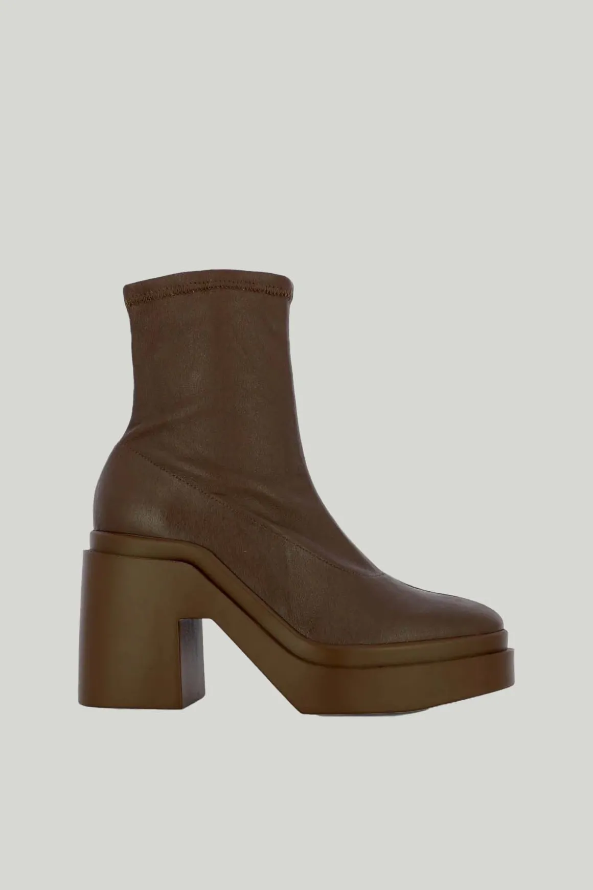 Ankelstøvletter i brunt fra franske Clergerie. Nina skiller seg ut med stilen til sålen som forenes i ett med hælen, og som overrasker med sin letthet og enestående komfort. Overdelen er laget av fleksibelt lammeskinn som fremhever konturen av benet. I tillegg har skinnet en absorberingsevne som beskytter mot dårlig vær. En ultimat partysko som er like fine til bukser, jeans, kjoler og skjørt.