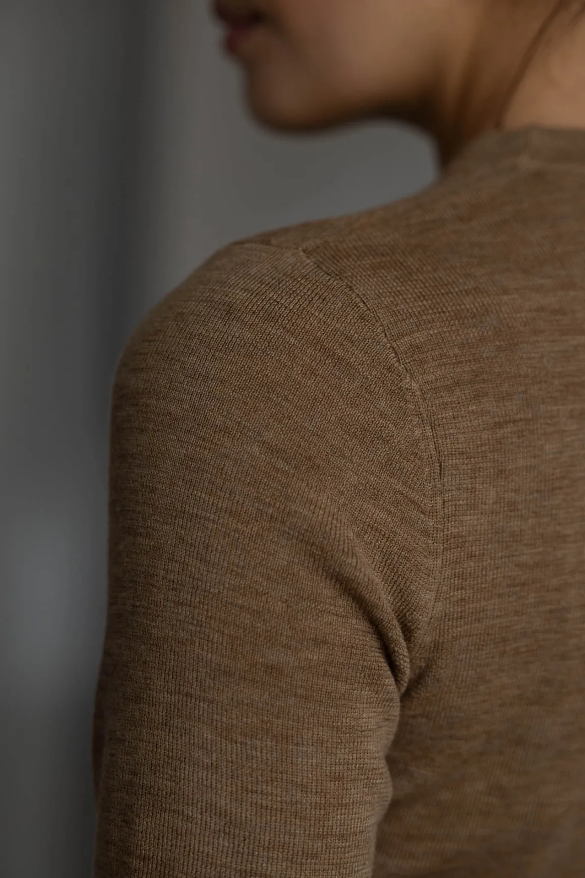 Luksuriøs, strikket T-skjorte i 100% merino ull fra MKDT. T-skjorten er tettsittende med halvlange ermer og avrundet hals. Et allsidig tilskudd til garderoben som du enkelt styler til jeans, bukse eller skjørt. Passer like fint til sommer som til vinter.