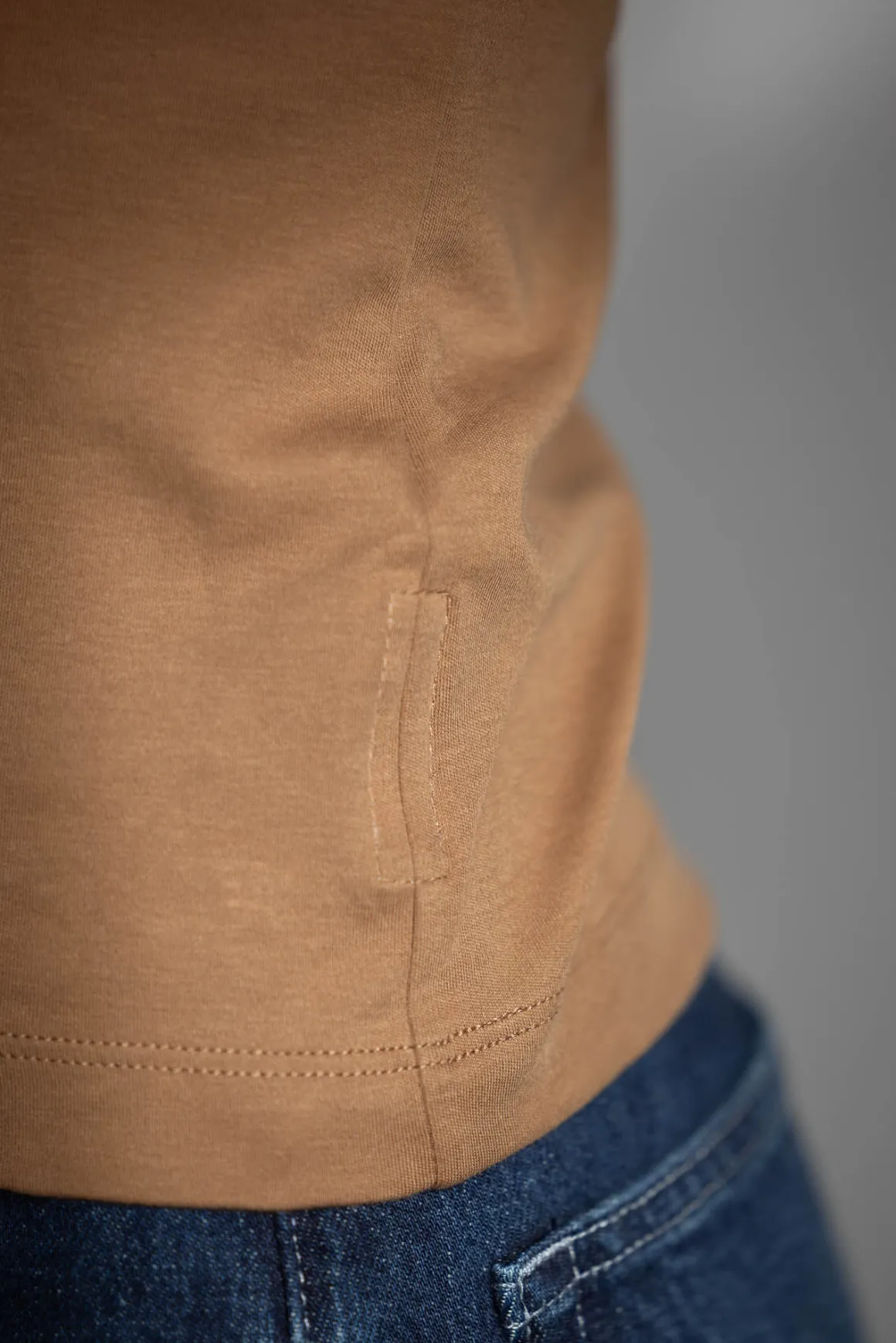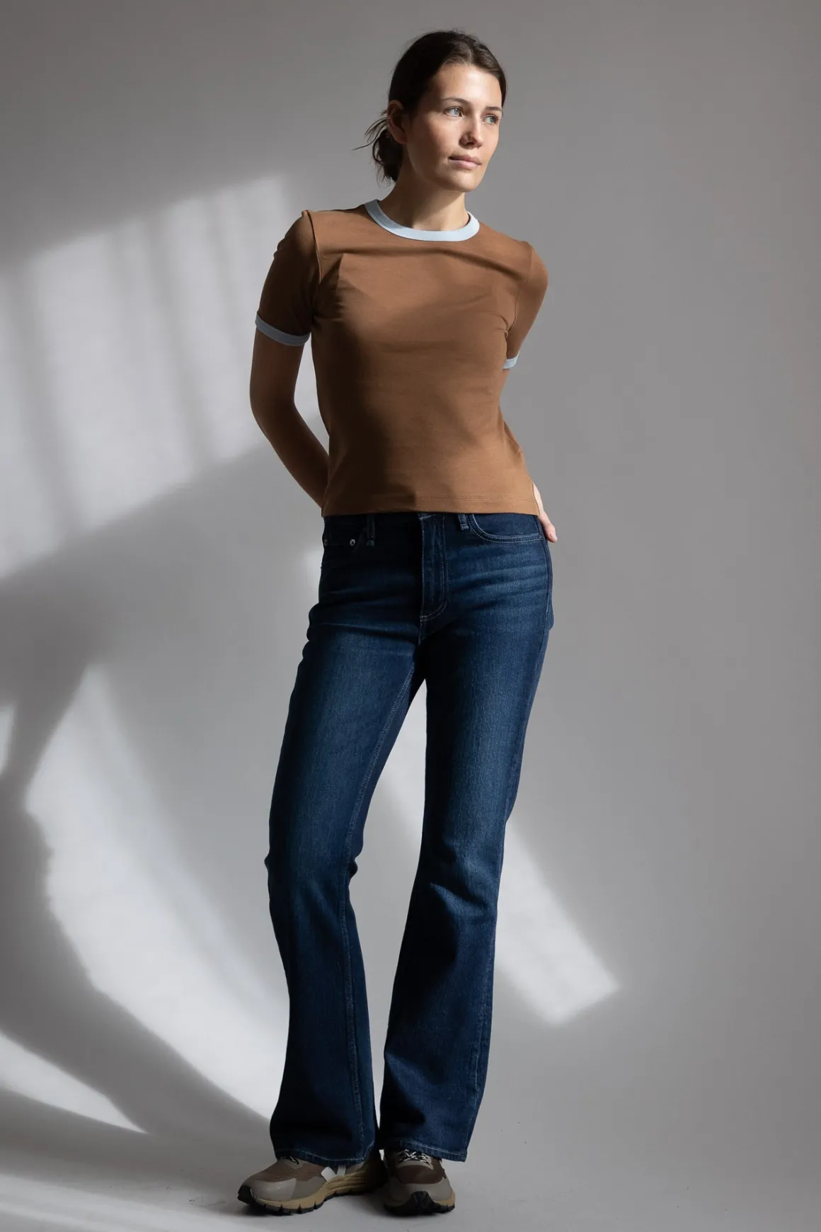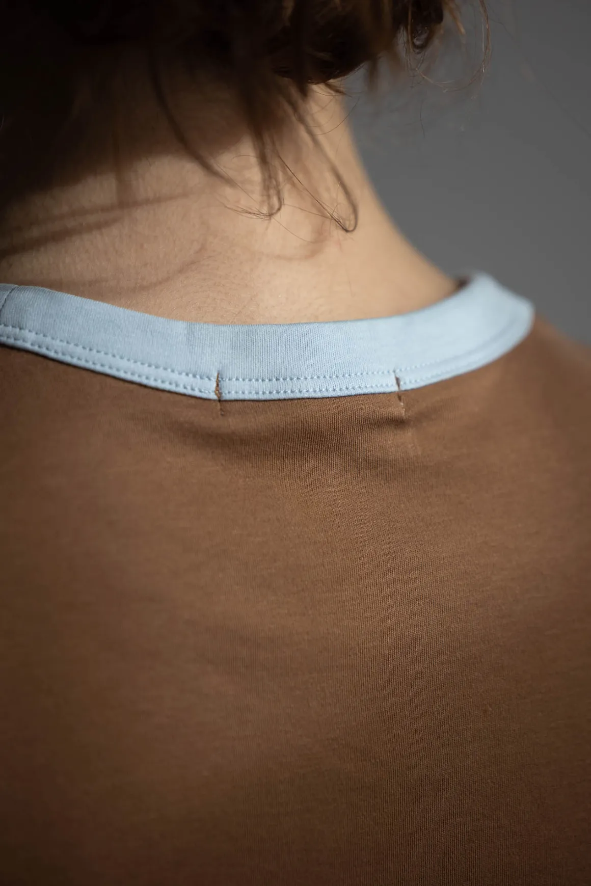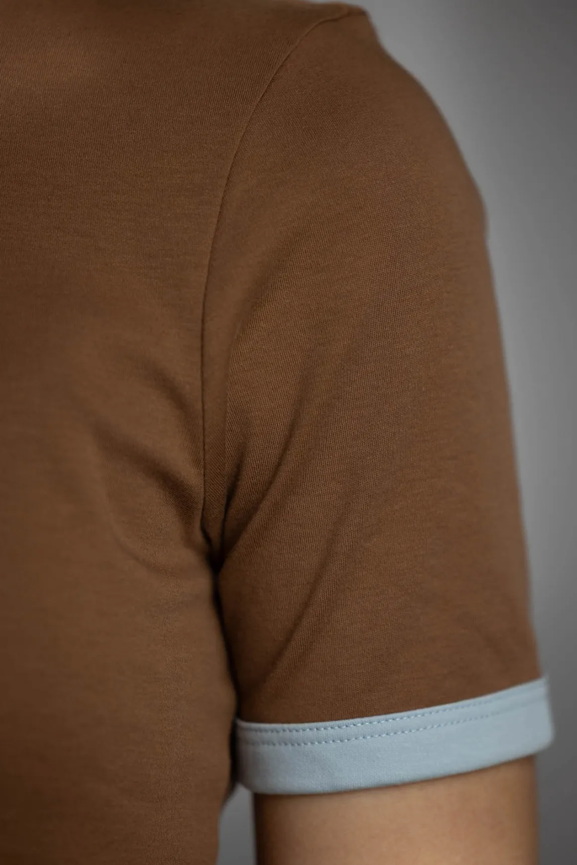 Klassisk Rag u0026amp; Bone t-skjorte i en delikat brunfarge med kontrast kant i hals og ermer. Den er i 100% bomull og kan enkelt stylet med f.eks jeans og olashorts.
