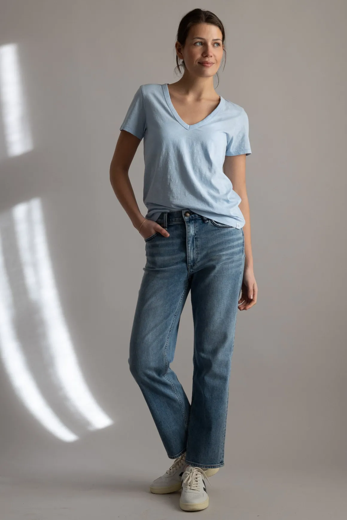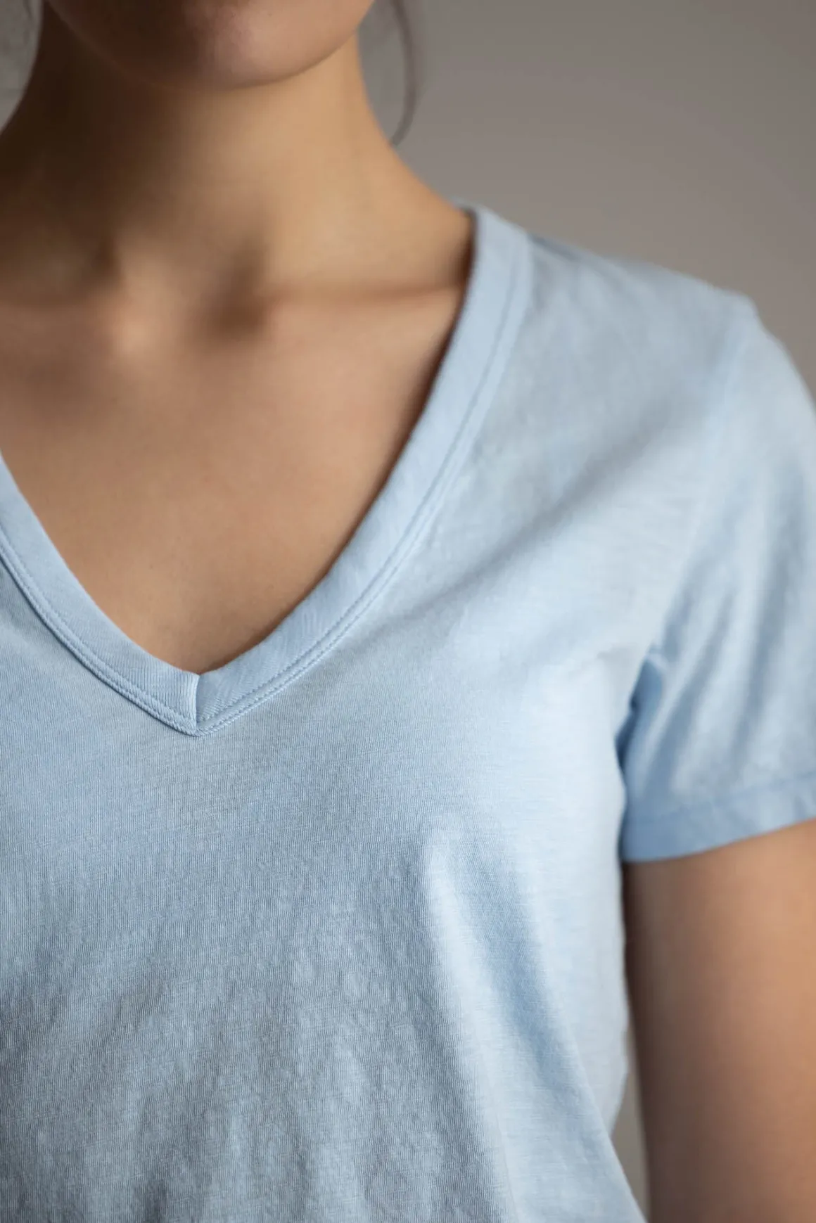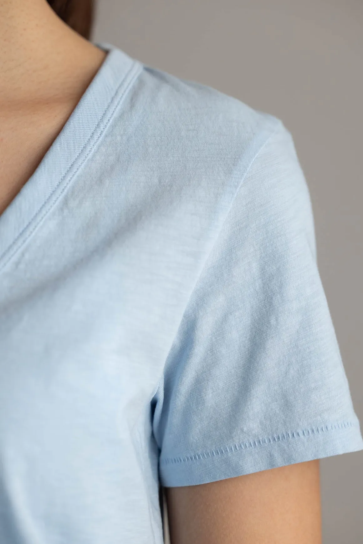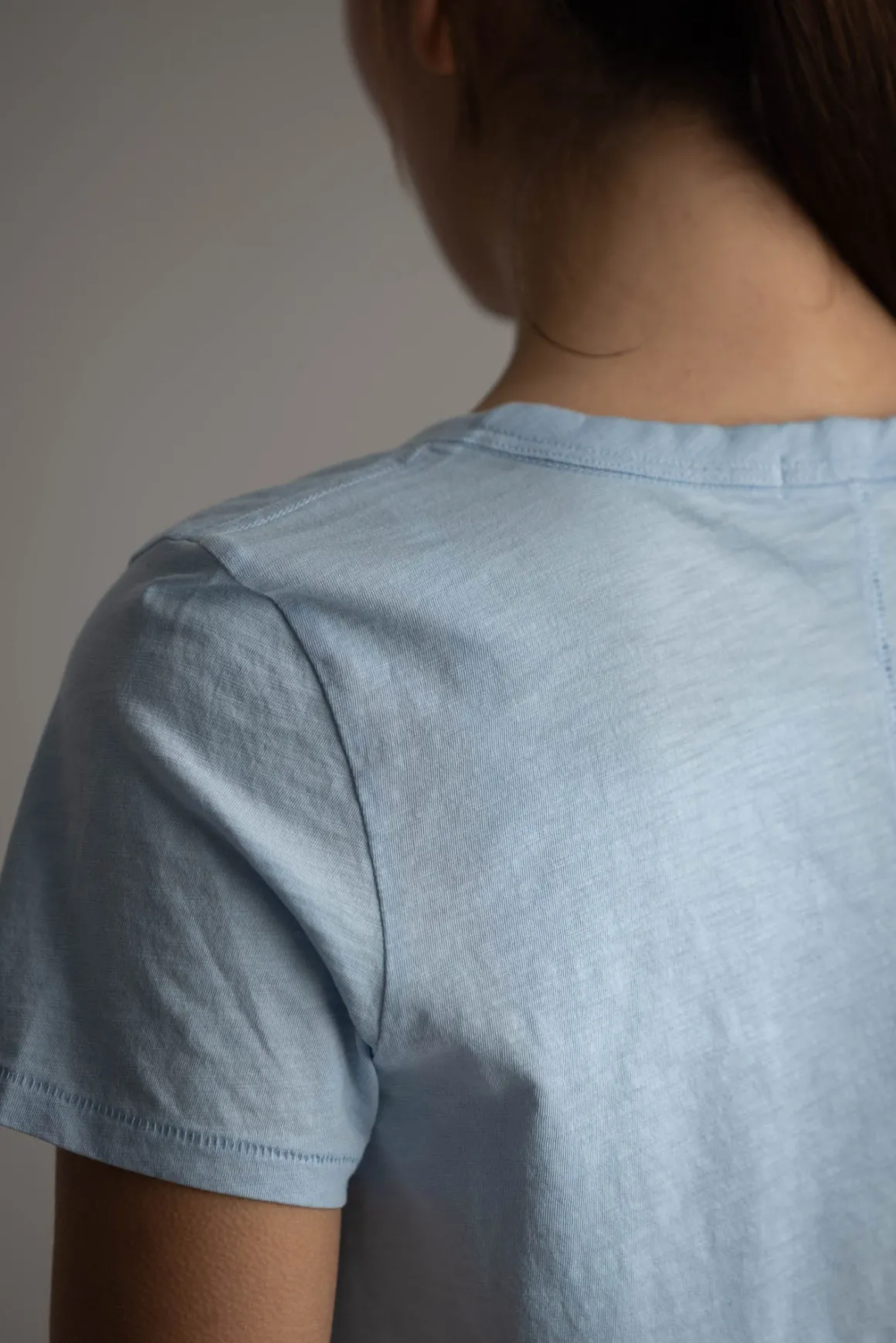 Ny garderobefavoritt fra Ragu0026amp;Bone. Denne klassiske t-skjorten i en fresh lyseblå farge er nøye utformet med en slank passform og korte ermer, og er skreddersydd for å tilby både komfort og holdbarhet. Laget av 100% pima-bomull som er kjent for sin myke og utrolig gode kvalitet som igjen holder seg gjennom hver vask. T-skjorten har et tidløst snitt som enkelt kan kombineres med jeans og sneakers for en uformell stil, eller under en blazer for en moderne vri. Et essensielt tilskudd til basegarderoben.