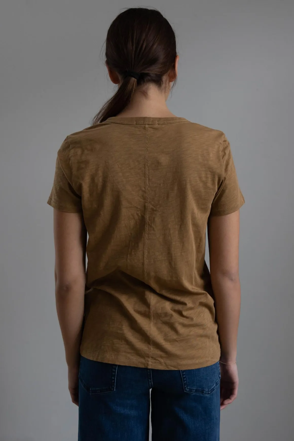 Ny garderobefavoritt fra Ragu0026amp;Bone. Denne klassiske t-skjorten er nøye utformet med en slank passform og korte ermer, og er skreddersydd for å tilby både komfort og holdbarhet. Laget av 100% pima-bomullsjersey er den kjent for sin myke og vintage inspirerte kvalitet som igjen holder seg gjennom hver vask. T-skjorten har et tidløst snitt som enkelt kan kombineres med jeans og sneakers for en uformell stil, eller under en blazer for en moderne vri. Et essensielt tilskudd til basegarderoben.