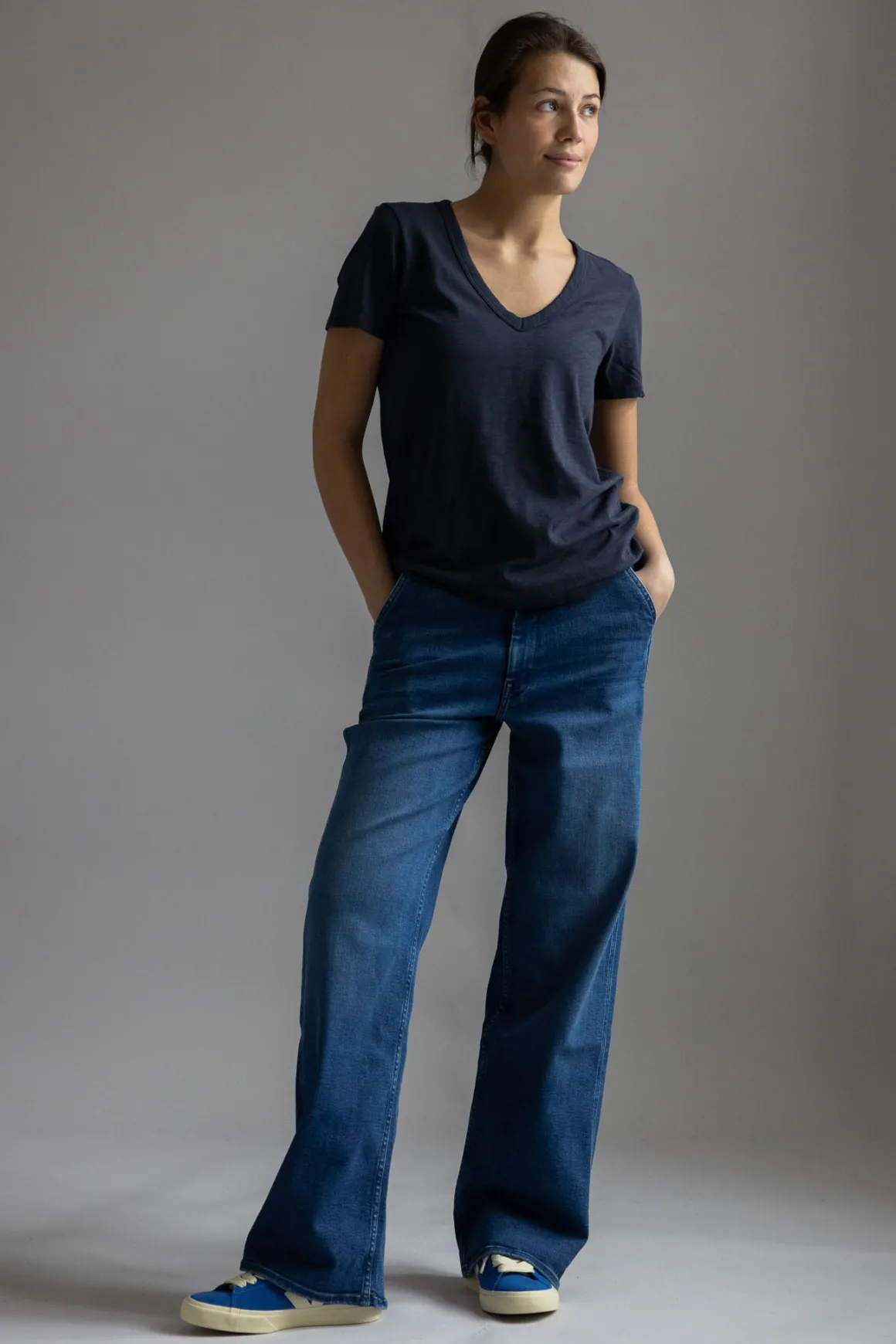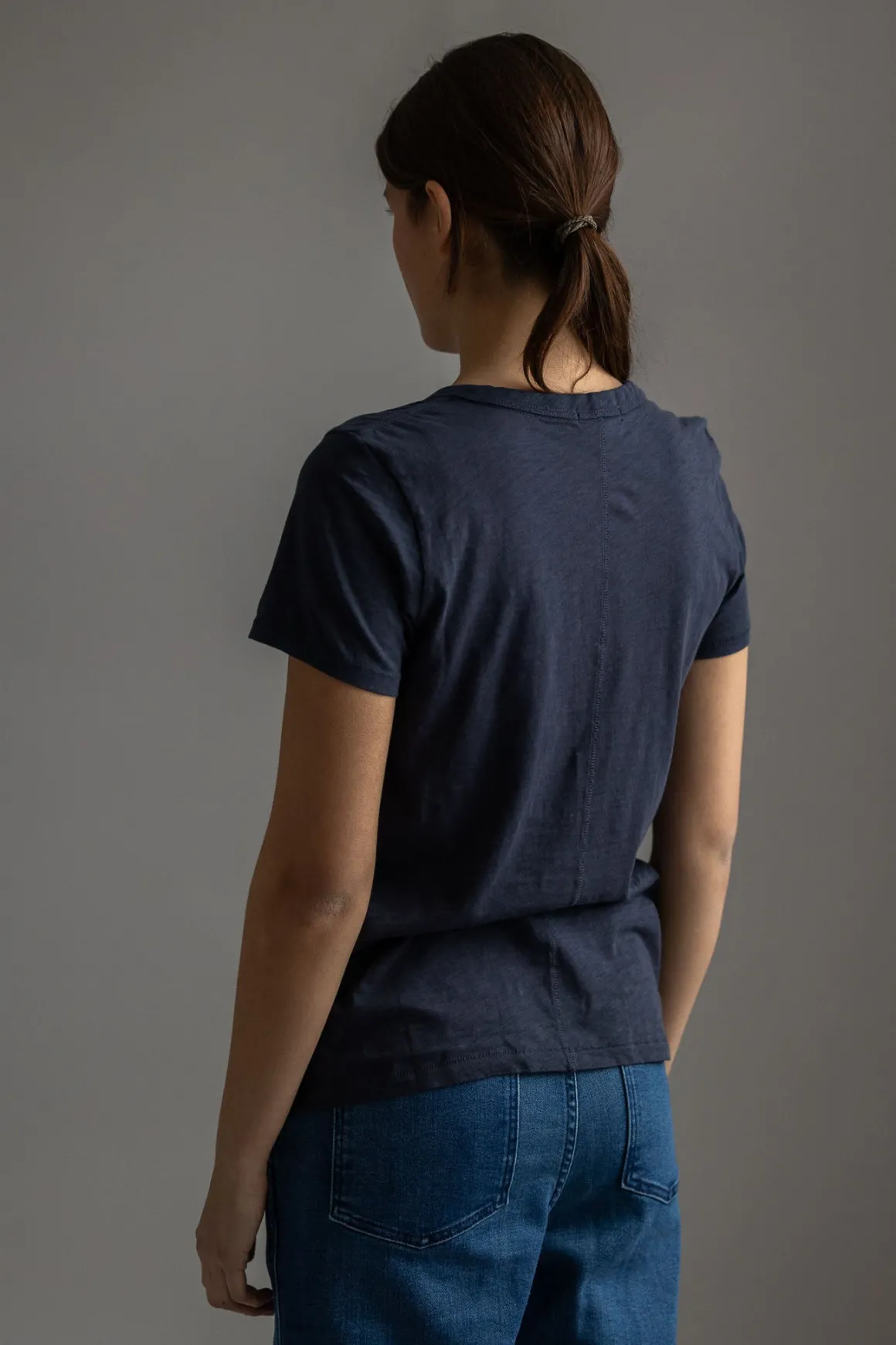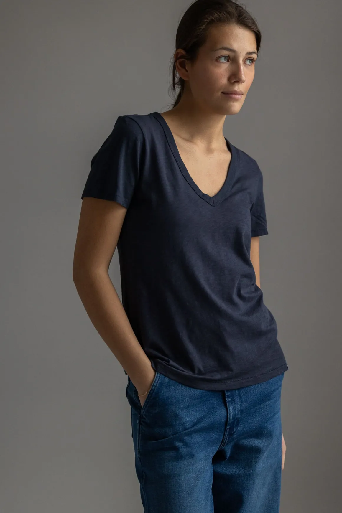 En klassiker fra Ragu0026amp;Bone. Denne tidløse t-skjorten er nøye utformet med en slank passform, v-hals og korte ermer. Laget av 100% pima-bomullsjersey er den kjent for sin myke og vintage inspirerte kvalitet som holder seg gjennom hver vask. T-skjorten har et tidløst snitt som enkelt kan kombineres med jeans og sneakers for en uformell stil, eller under en blazer for en moderne vri. Et essensielt tilskudd til basegarderoben.