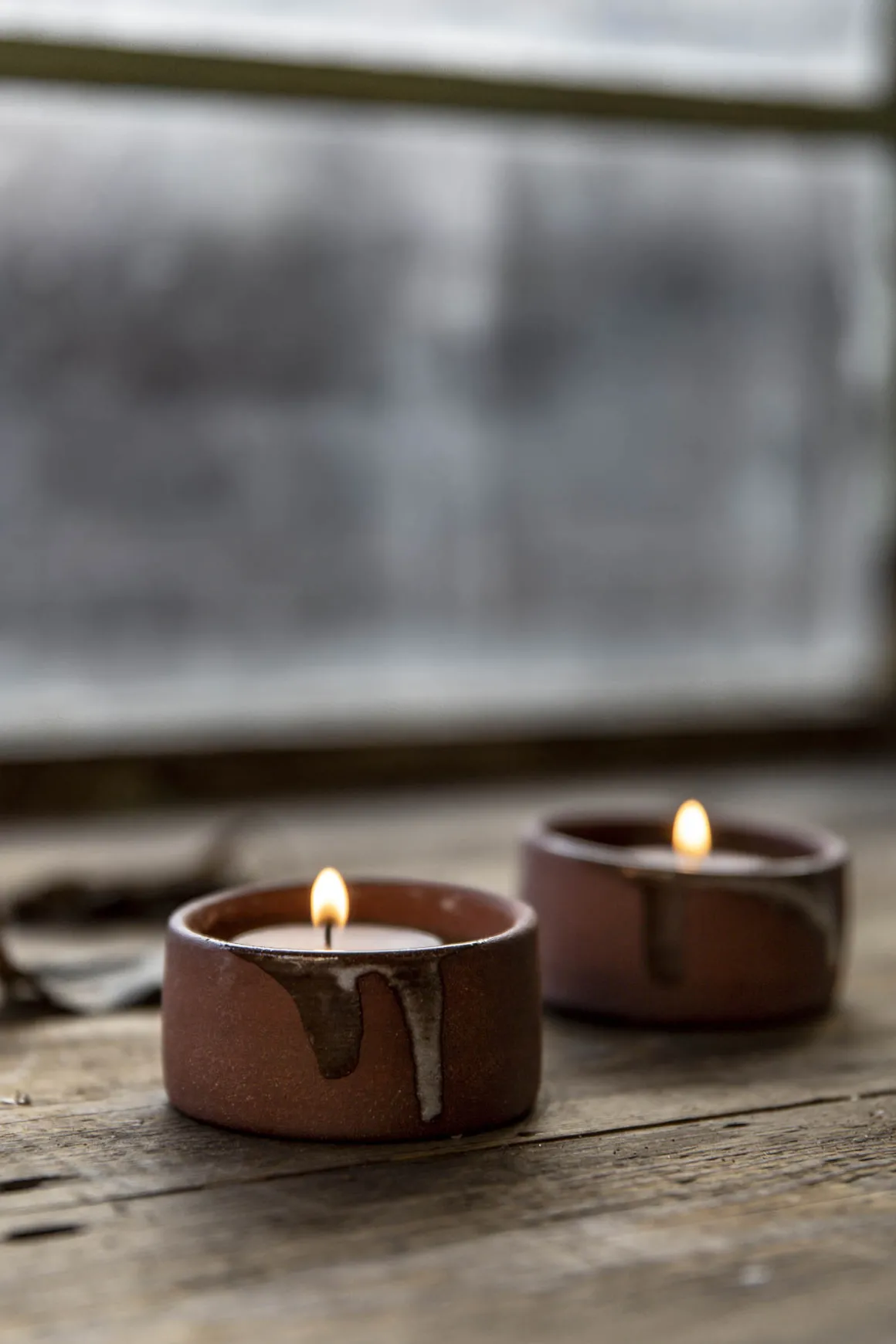 Unik, håndlaget telysholder fra Peacy Handmade, laget eksklusivt for Bolina. Telysholderne blir laget for hånd av Hanne Stige i Asker – kortreist, norsk design på sitt beste! Den vakre, varierende og litt rennene glasuren gir et organisk, rått uttrykk og understreker individualiteten til hvert produkt, som vi elsker. Disse vil passe inn overalt og gir en perfekt dose rustikk varme til interiøret. Siden alle er unike, vil de variere noe i størrelse, form, farge og glasur, og vil avvike noe fra bildet over.