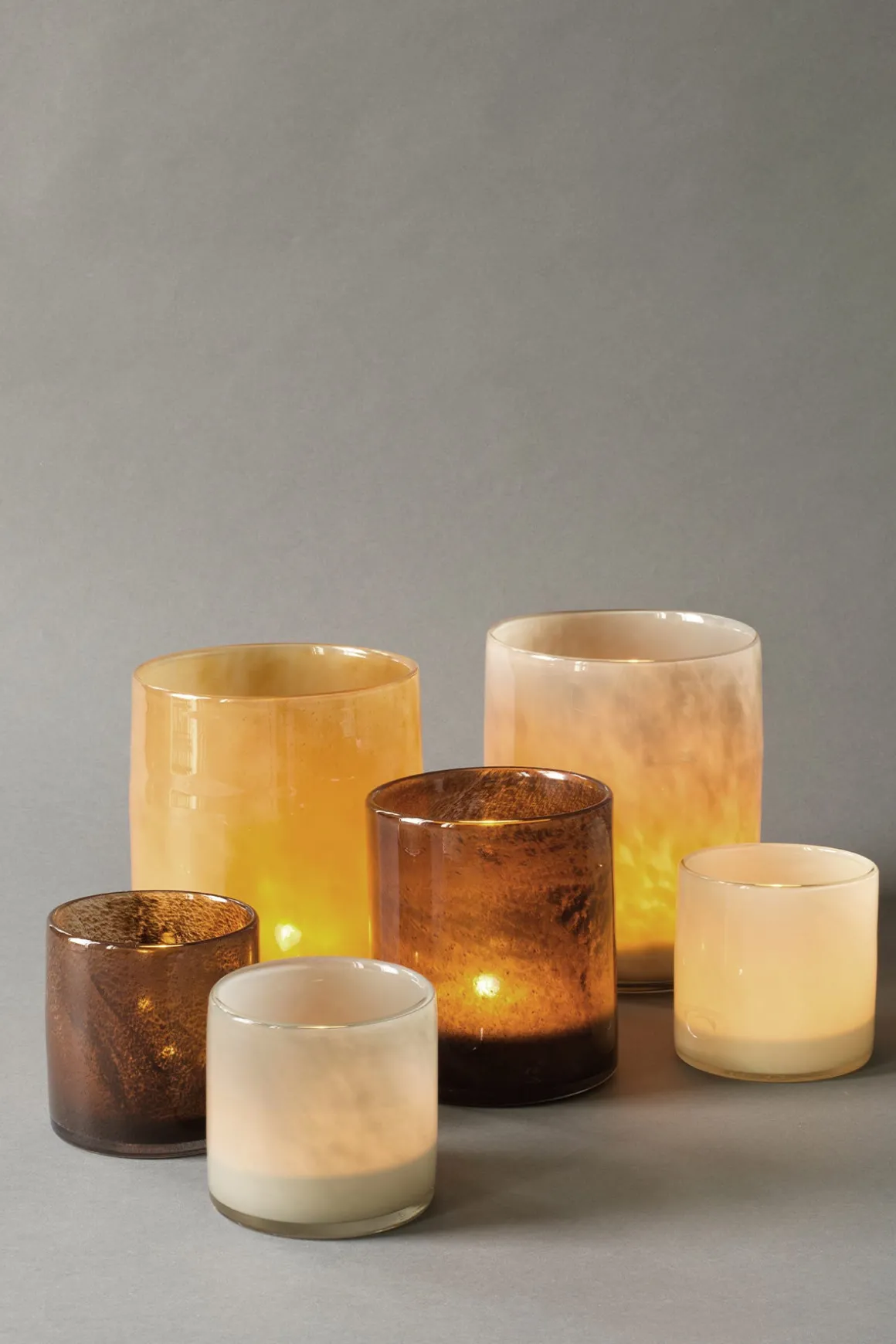 Telysholder av farget glass fra Tell me More. Glasset er farget med en spesiell teknikk som gir vakre nyanser i glasset. Når lyset skinner igjennom glasset vil det gi en fin atmosfære til ethvert rom.