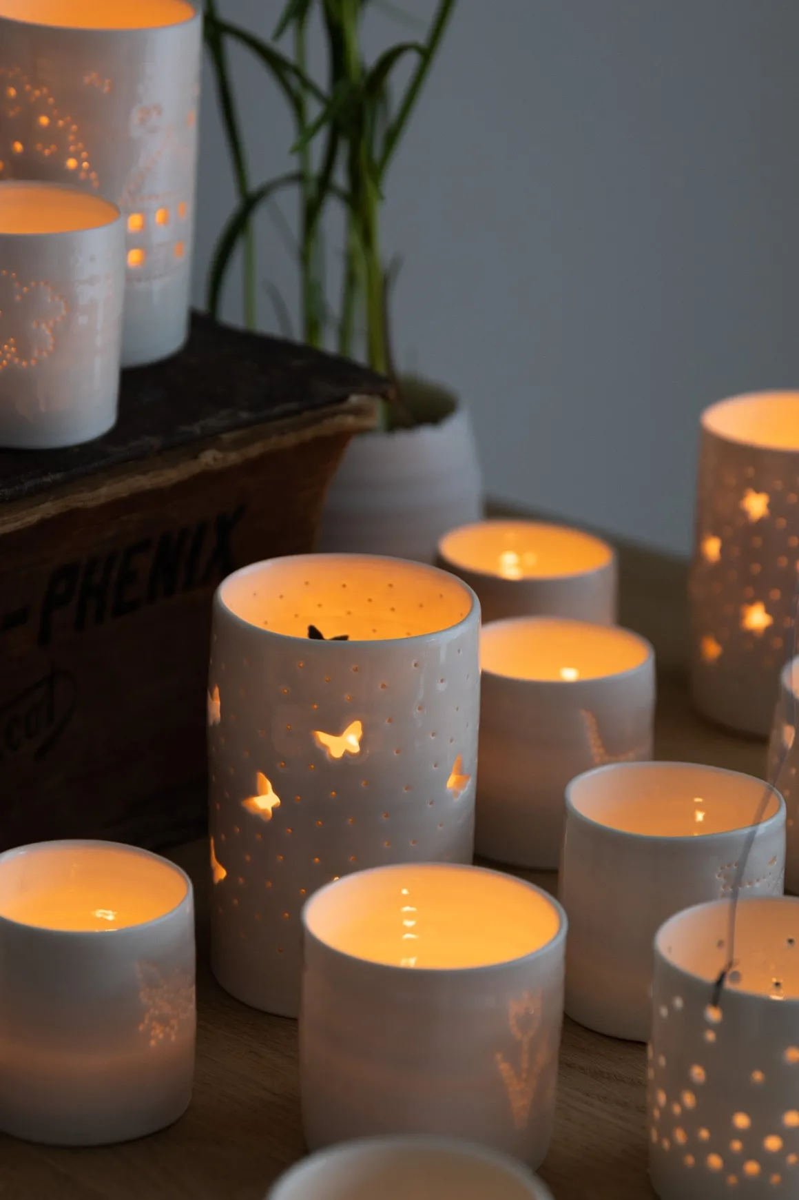 Mini telysholder i elfenbenshvit, glasert porselen fra Luna Lighting. Alle telysholdere er dekorert med små hull i kreative mønster for å slippe lyset ut og gi en magisk atmosfære i rommet. Hver enkelt telysholder er laget for hånd av et bittelite team i England og alle har små variasjoner i størrelse og form. Luna Lighting har vært på Bolina i en årrekke og er en favoritt blant våre kunder.
