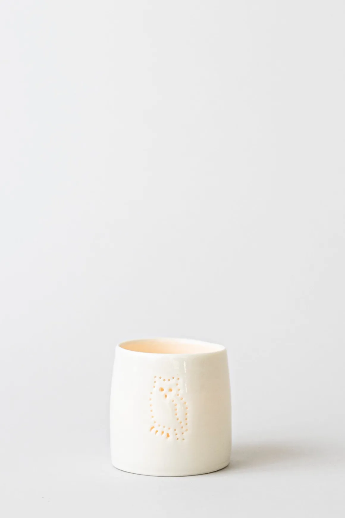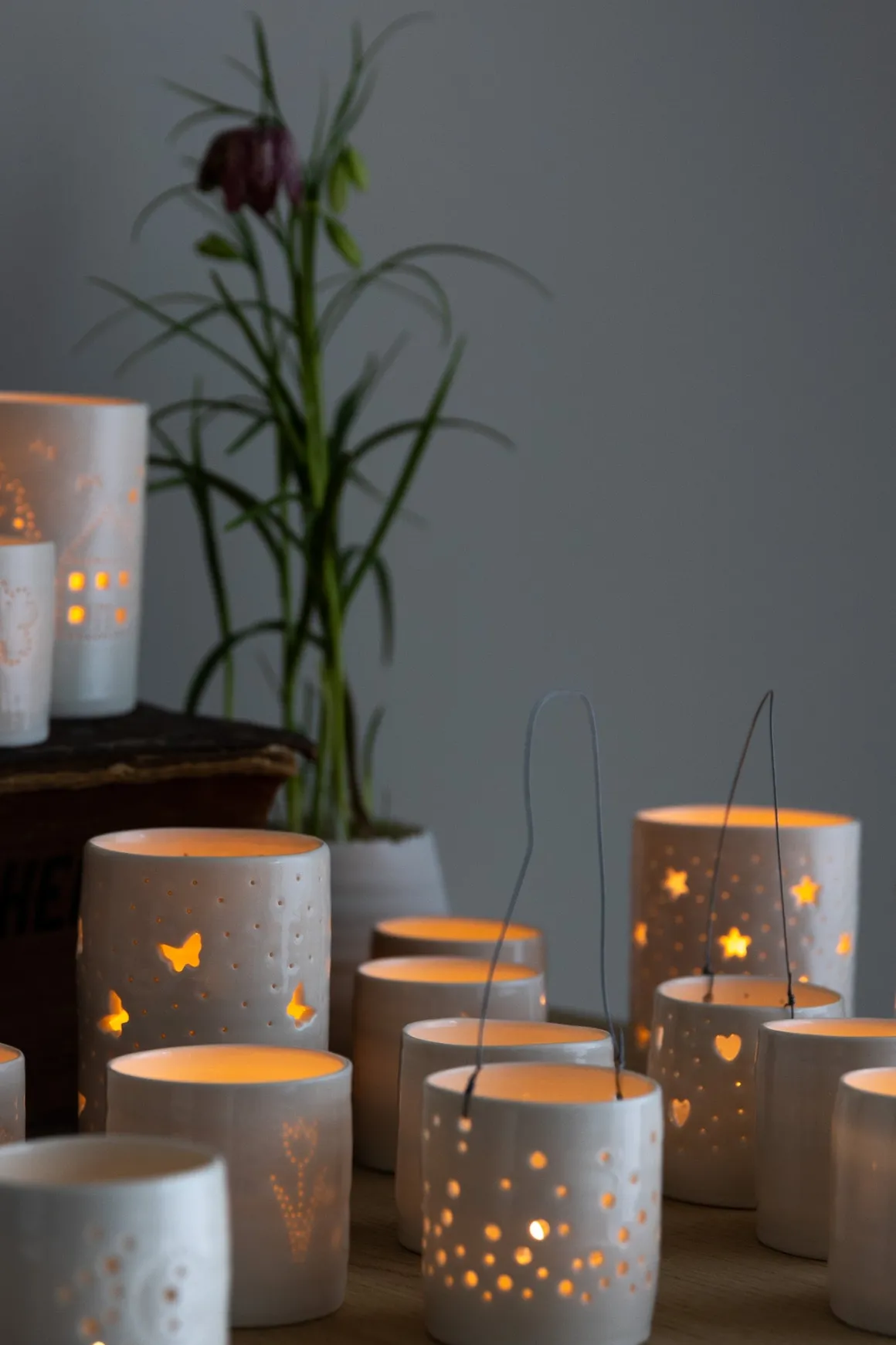 Mini telysholder i elfenbenshvit, glasert porselen fra Luna Lighting. Alle telysholdere er dekorert med små hull i kreative mønster for å slippe lyset ut og gi en magisk atmosfære i rommet. Hver enkelt telysholder er laget for hånd av et bittelite team i England og alle har små variasjoner i størrelse og form. Luna Lighting har vært på Bolina i en årrekke og er en favoritt blant våre kunder.