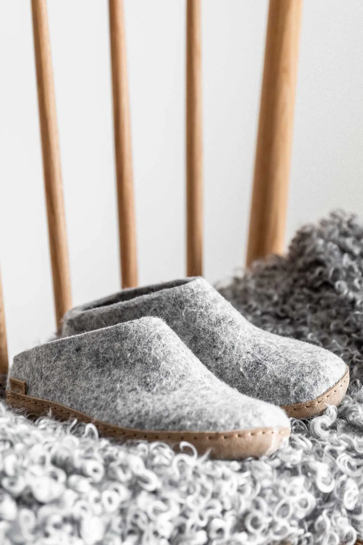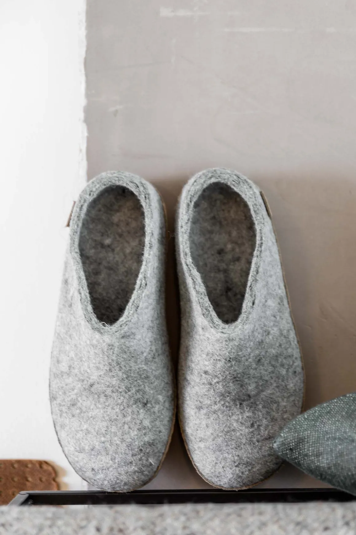 Bolina elsker de klassiske filttøflene fra danske Glerups og har hatt disse i butikk i alle år. Holder føttene varme og tørre (ullen opptar fukt). OBS: Fare for tøffelavhengighet! Laget av 100% naturlig ull med skinnsåle.