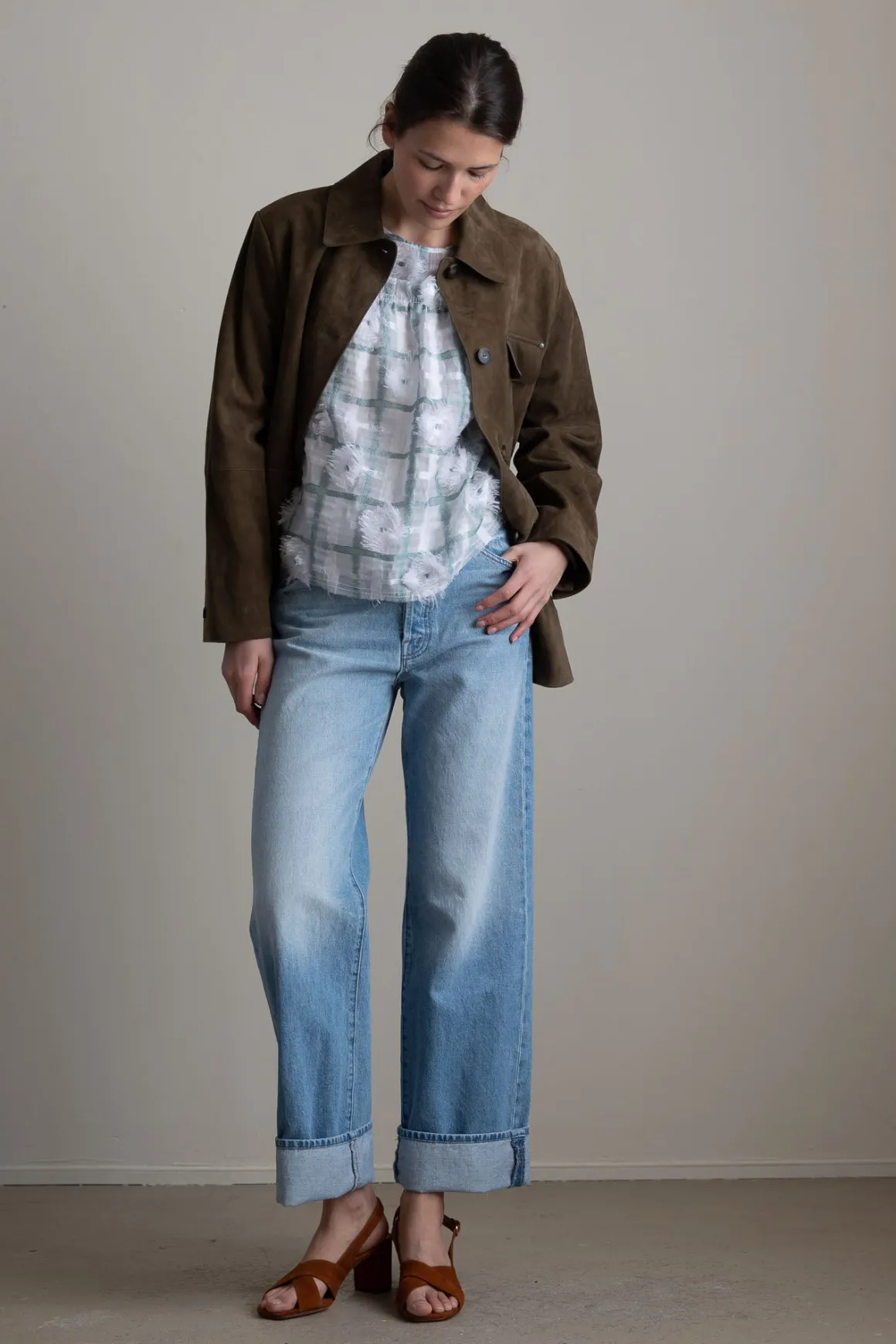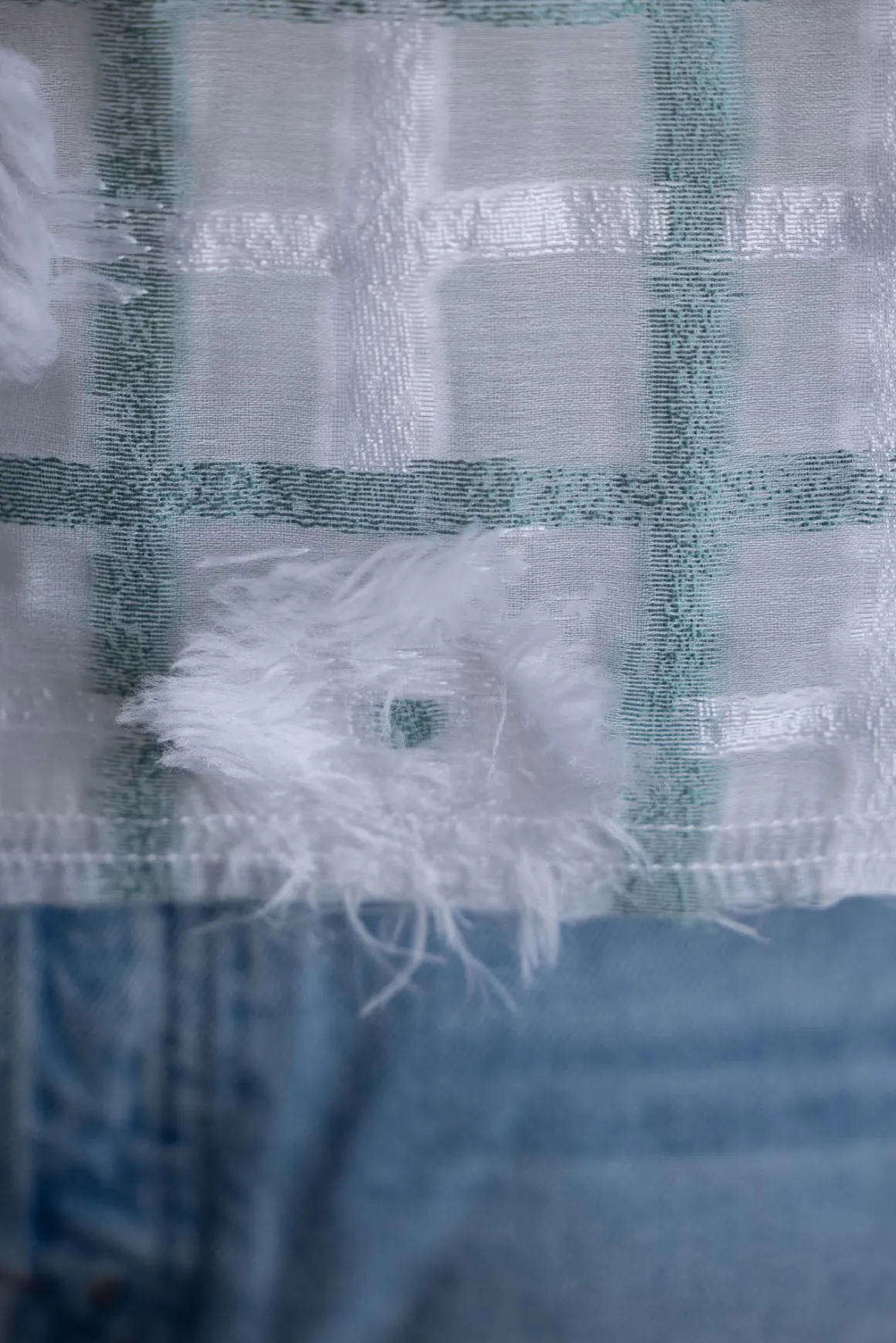 Vakker topp fra Odeeh i et transparent, teksturert stoff med rutemønster og myke frynsedetaljer som gir både dybde og bevegelse. Detaljert med fine legg og knappelukking bak, og fôret med et glatt, behagelig stoff som gjør toppen lett å bruke. Den rette fasongen gir et moderne uttrykk og gjør at toppen faller pent både over jeans og skjørt.
