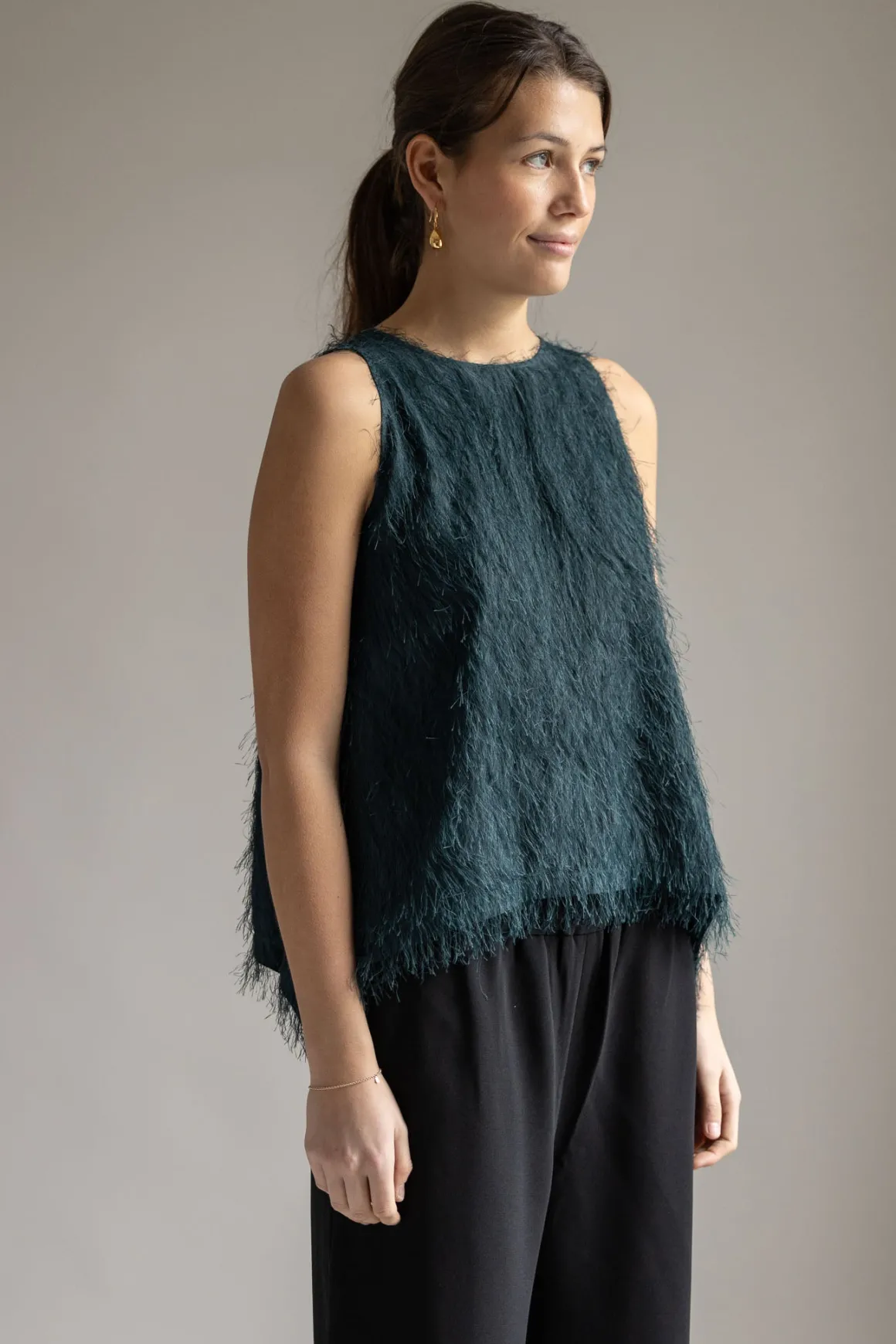 Sesongens ultimate partytopp! Odeeh leverer igjen med sin lekenhet i både tekstur og farge, og denne toppen er et strålende eksempel på hva de gjør best. Et plagg som virkelig skiller seg ut – superkul med blazer og dressbukser, men like flott over et maxiskjørt til fest.