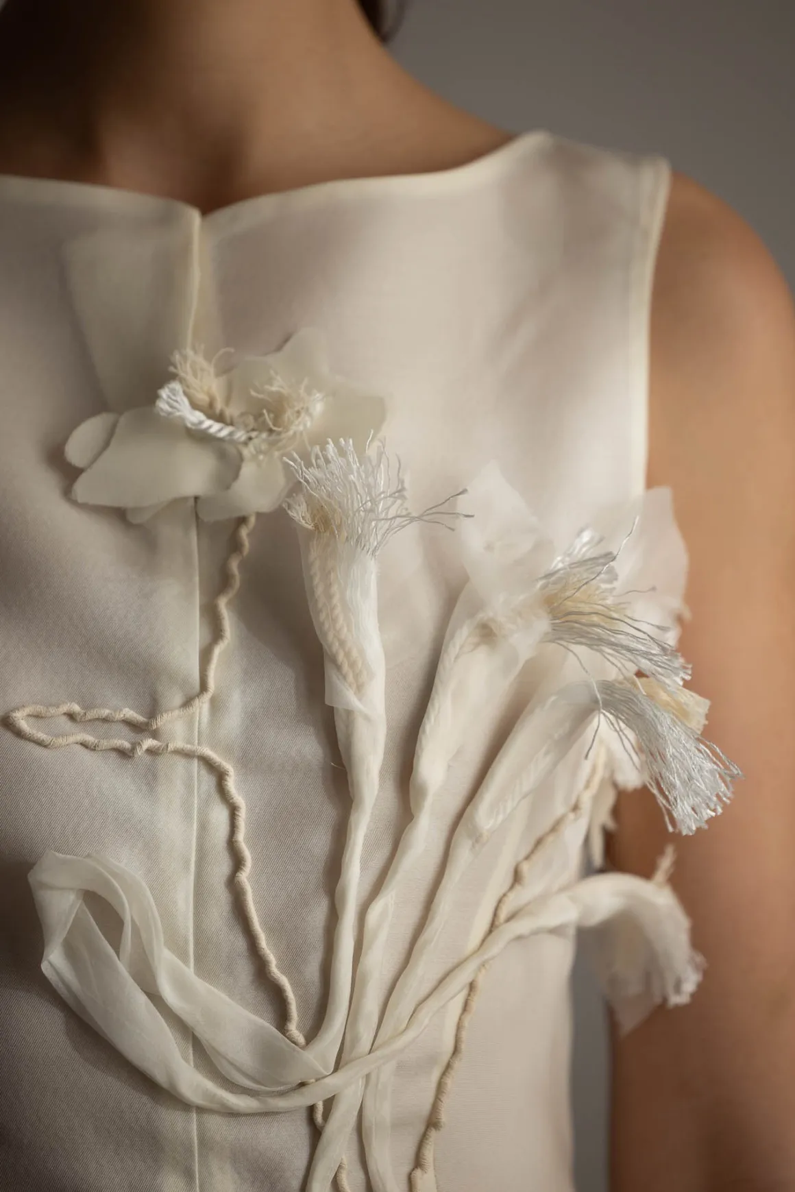 Unik og skulpturert topp med foldedetalj i fargen ivory/kremhvit fra MKDT.