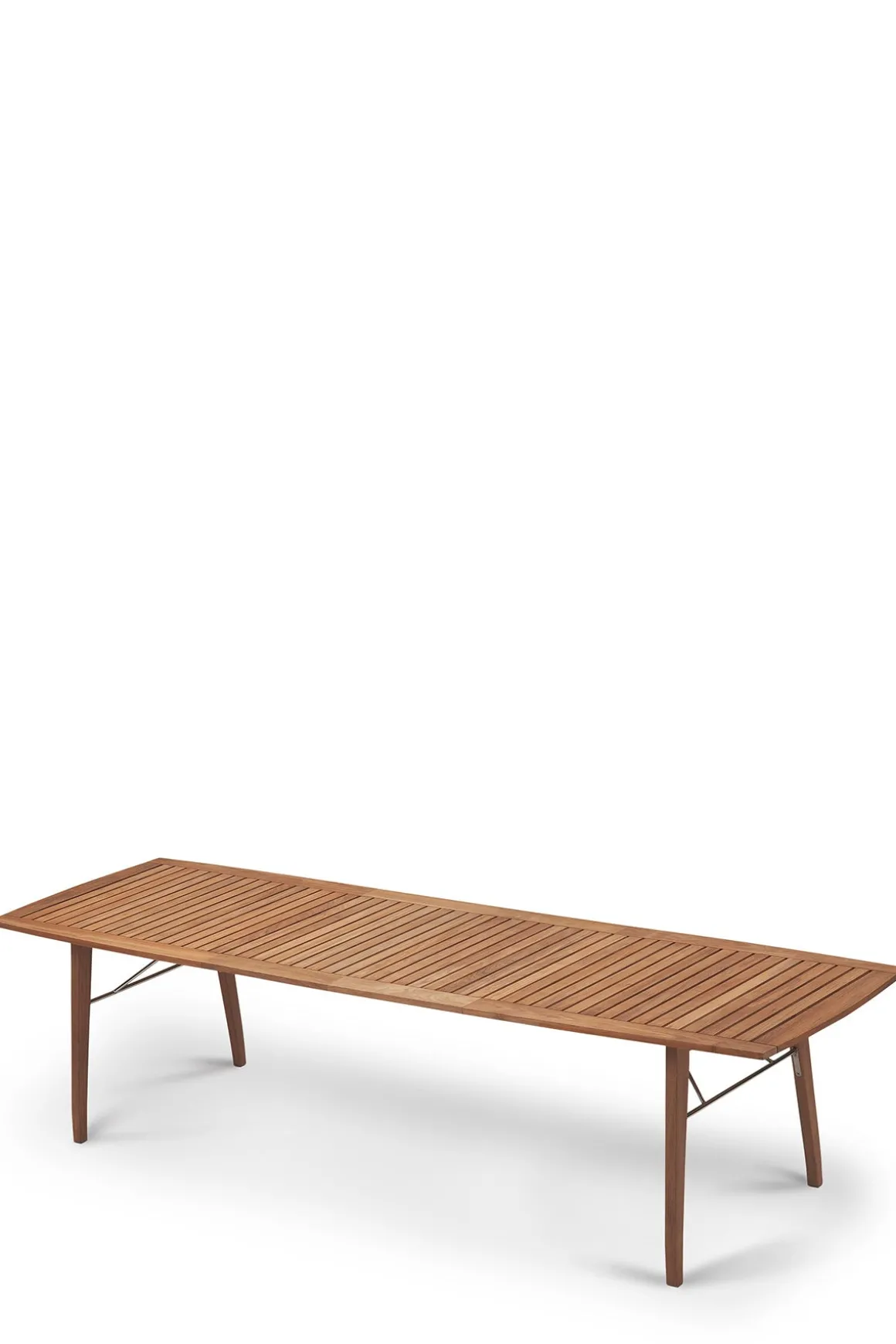 Spisebordet Ballare fra Skagerak er den perfekte kombinasjonen av klassisk design og funksjonalitet, og visker ut grensene mellom inne- og utemøbler. Laget av solid teak, en svært slitesterk tresort som krever lite vedlikehold og eldes med ynde. Over tid vil treet patinere og få den sølvgrå fargen mange er så glad i, men bordet kan også behandles for å bevare den originale fargen. Bordet har et praktisk uttrekkssystem, som lar deg forlenge bordet enkelt med en eller to plater. Det perfekte utebordet for hele familien, og kanskje noen uventede gjester.