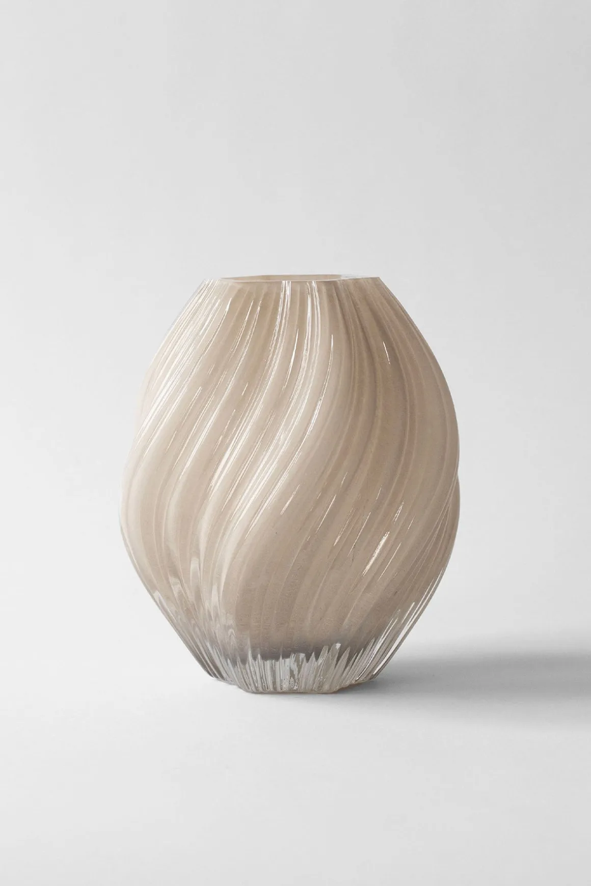 Vase fra det svenske merket Tell Me More. Noma er en delikat glassvase med en luftig form som passer perfekt i ethvert hjem. Den har en varm beige tone med vakre fargeskiftninger i glasset, som gir den et levende og særegent uttrykk. På grunn av håndverket kan fargen og formen variere noe fra bildene. Den kan også brukes som en sjarmerende lyslykt; da med et lys på maksimalt 5 cm.