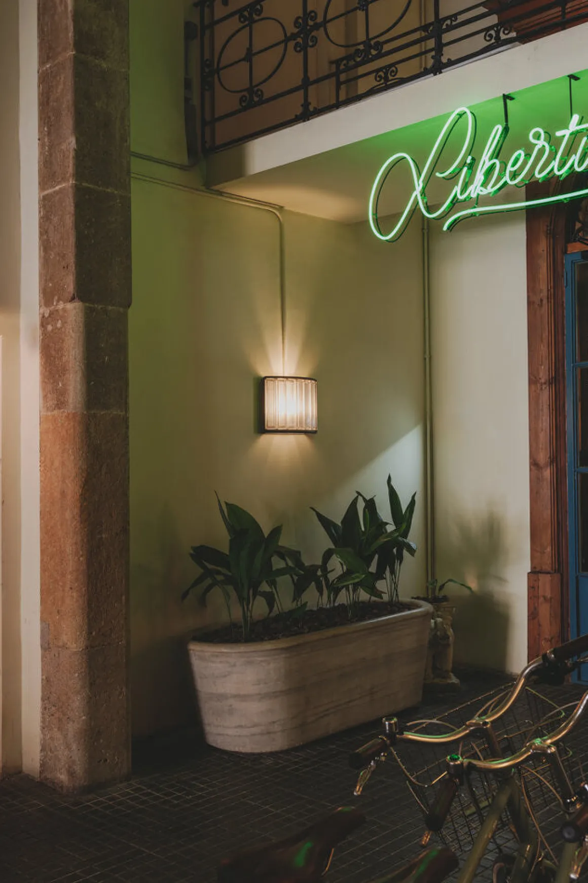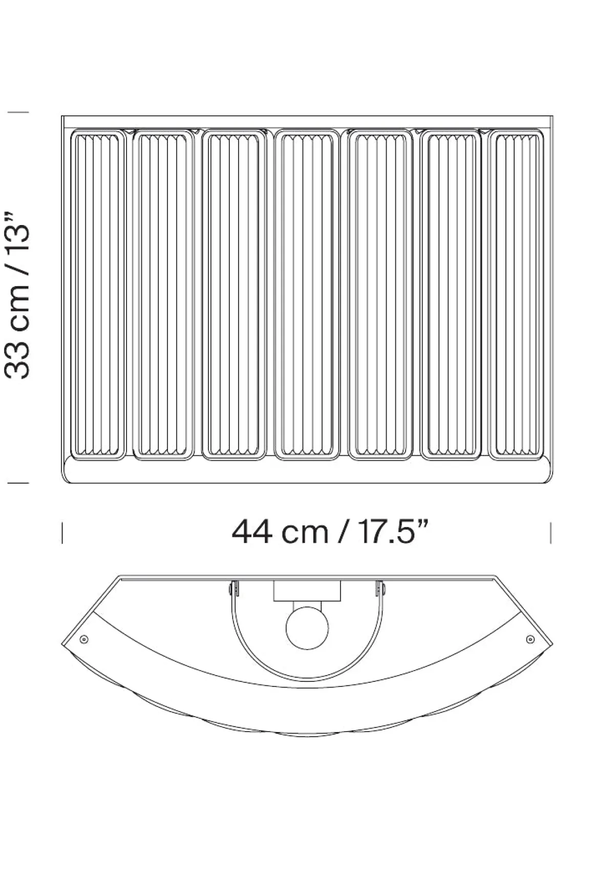 Estadio vegglampe fra Santa u0026amp; Cole ble opprinnelig utviklet for å belyse det olympiske stadionet i Barcelona i 1992. Lampen viser hvordan godt design kan forbedre et rom ved å skape et balansert samspill mellom lys og skygge. Den buede formen og glassblokkene i strukturen sørger for en jevn diffusjon av lyset, samtidig som de tilfører en visuell dybde som gjør lampen til et blikkfang. Med sin solide konstruksjon og en arkitektonisk tilnærming, er Estadio en lampe som passer perfekt i både moderne og klassiske omgivelser. Miguel Milá har skapt en lampe som kombinerer funksjonalitet og et klart, estetisk uttrykk, og tilfører rommet en unik atmosfære.