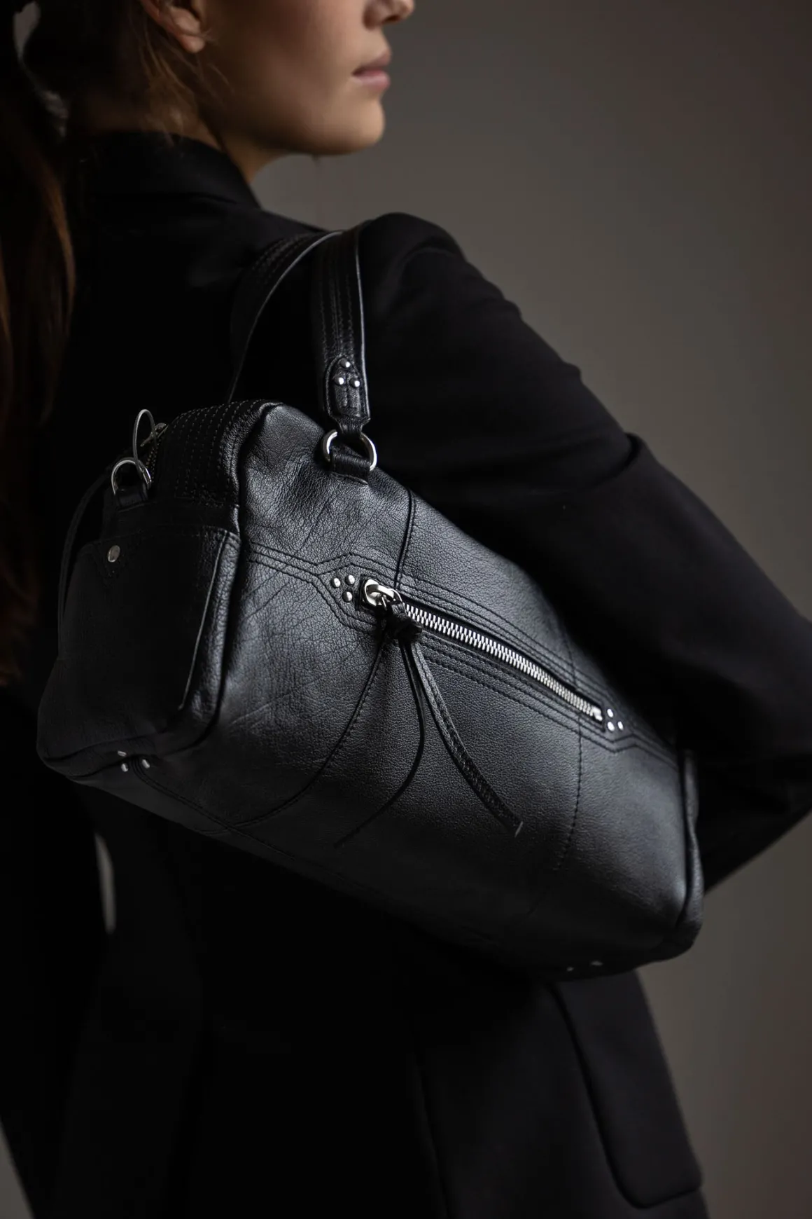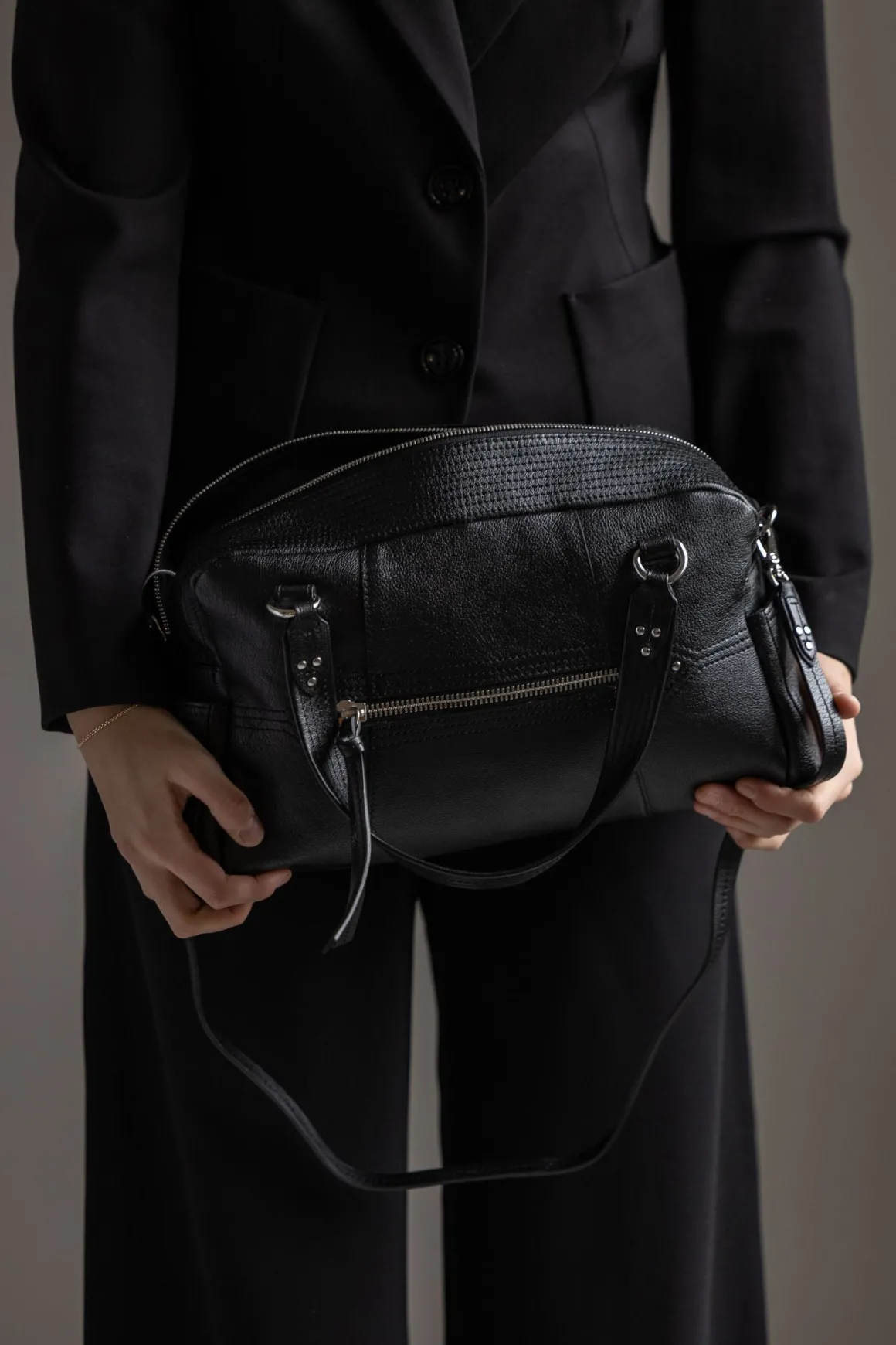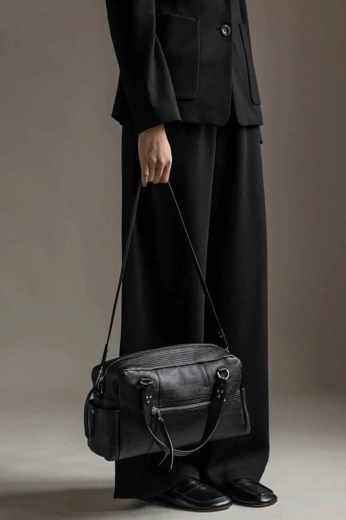 Bowlinginspirert veske fra Jerome Dreyfuss som både er allsidig og praktisk. Den kan bæres over skulderen, crossbody eller for hånd, med en avtakbar skulderstropp og solide håndtak som gir fleksibilitet i bruk. Glidelåslukkingen med skinnsnorer og de gjennomtenkte lommene, både innvendig og utvendig, gjør det enkelt å holde orden.