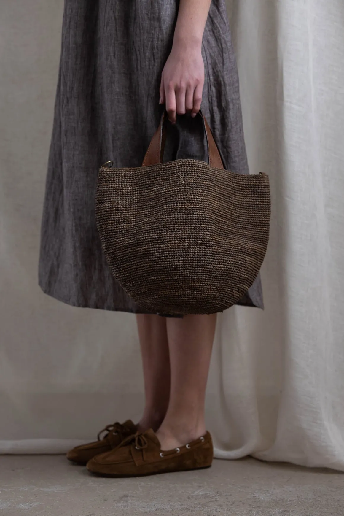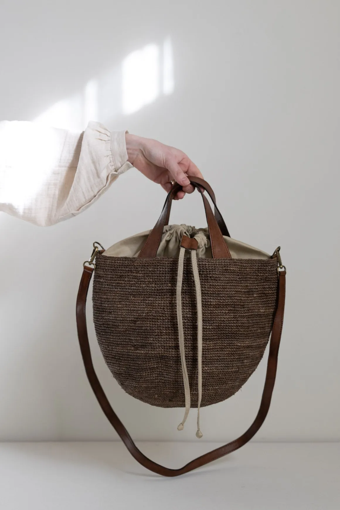 Mirozy-vesken fra Ibeliv er en håndlaget bøtteveske i naturraffia med et tidløst uttrykk og praktisk størrelse som gjør den perfekt både til byliv og utflukter. Navnet betyr «å gå en tur» på malagassisk, og nettopp det er vesken skapt for – lett å ta med seg, lett å bruke. Den er heklet for hånd på Madagaskar og kommer med to korte håndtak og en avtagbar skulderrem i vegetabilsk garvet sebulær. Inni skjuler et innerlokk i økologisk bomull innholdet, og lukkes med snøring. Vesken er myk, men robust, laget av naturlige fibre med tydelige spor av godt håndverk i hver detalj. Mirozy kombinerer funksjon og stil, og er enkel å bære både i hånden, over skulderen eller som crossbody – alt etter hva dagen krever. Den følger deg fra strand til by og gir antrekket et naturlig og gjennomført preg.