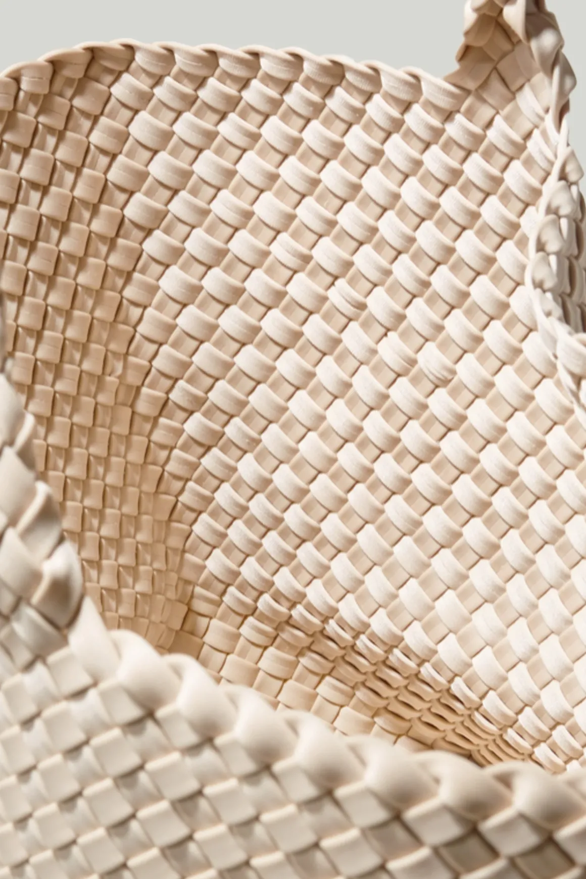 Lett og romslig; St. Barths Medium Tote er laget av håndvevd neopren. Naghedi som merkevare drives av etisk og bærekraftig praksis. Merket bruker toppmoderne stoffer i produksjonen av veskene sine. Stoffene er holdbare og lette å vedlikeholde. Veskene er individuelt håndhevd av dyktige vevere. Vesken rommer det du måtte trenge av nødvendigheter. Det medfølger en pung for oppbevaring av mindre gjenstander. Dette er en allsidig veske som kan bæres gjennom alle sesongene.