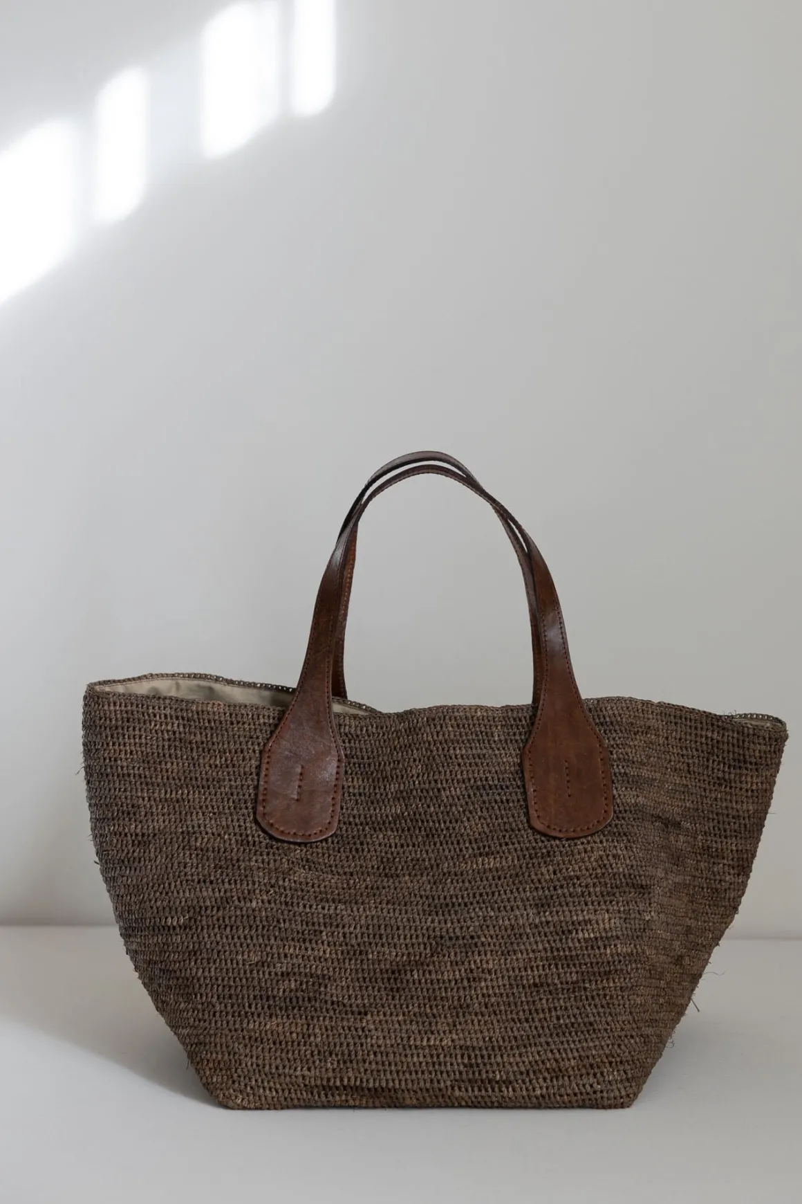 Tokyo II-vesken fra Ibeliv er en mellomstor håndlaget tote i naturraffia, designet for å være like praktisk som den er tidløs. Med sin romslige fasong og fire innvendige lommer får du både oversikt og plass til alt du trenger i løpet av dagen. Vesken er heklet for hånd på Madagaskar og fôret med økologisk bomull, mens de myke håndtakene i vegetabilsk garvet sebulær gir en behagelig bærefølelse. Den lukkes med en magnetknapp og kan bæres både i hånden og over skulderen. Tokyo II har et rent uttrykk som passer til både byliv og strand, og blir lett en fast følgesvenn til hverdagsantrekket. Hver veske er unik og bærer spor av ekte håndverk og naturlige materialer som holder lenge og blir finere med bruk.