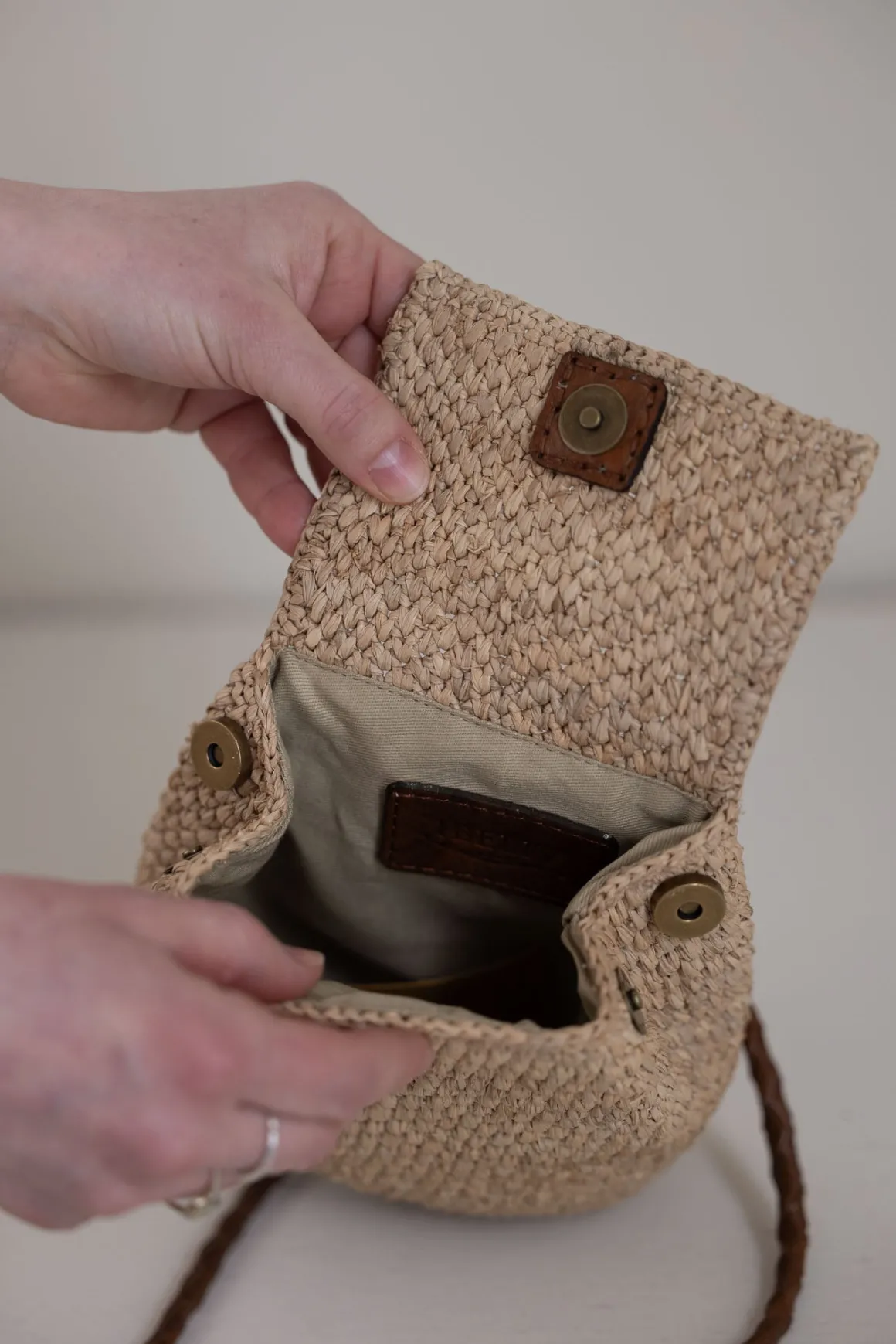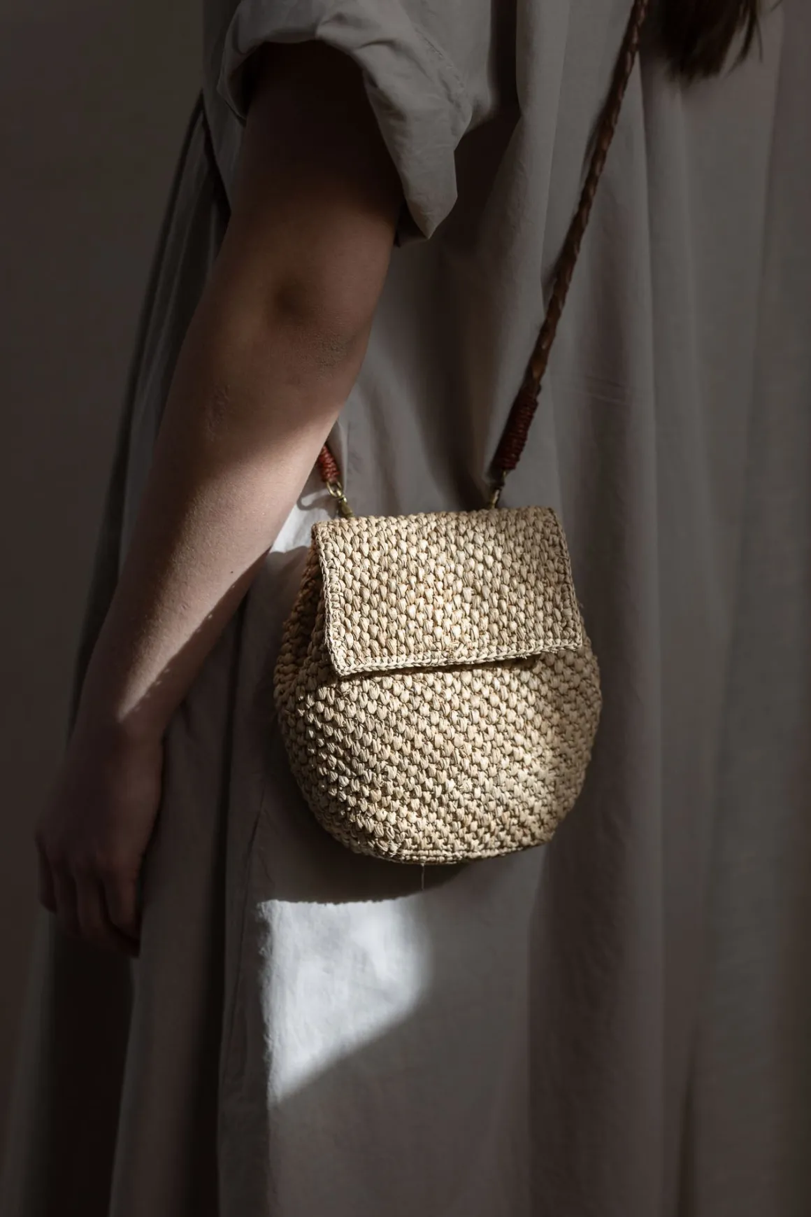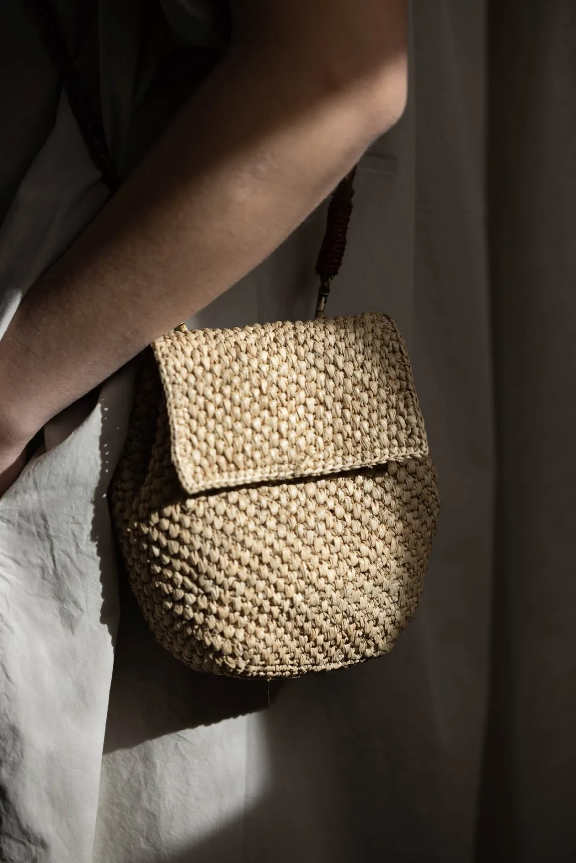 Zaz-vesken fra Ibeliv er håndlaget i naturraffia og har et lett og minimalistisk uttrykk. Navnet betyr «barn» på malagassisk, og viser til både det kompakte formatet og den enkle, poetiske formen. Vesken er fôret med økologisk bomull og lukkes med en klaff og magnetknapp. Den avtagbare skulderremmen i flettet, vegetabilsk garvet sebulær gjør at du kan bære den akkurat slik det passer deg – som crossbody, over skulderen eller rundt livet. Zaz er lett og praktisk med plass til det viktigste, og passer like godt til hverdags som til sommerlige anledninger. Hver veske er heklet for hånd på Madagaskar, og små variasjoner gjør hvert eksemplar unikt. Dette er et enkelt og funksjonelt tilbehør du kan bruke lenge, og som tilfører antrekket ditt en naturlig og gjennomført detalj.
