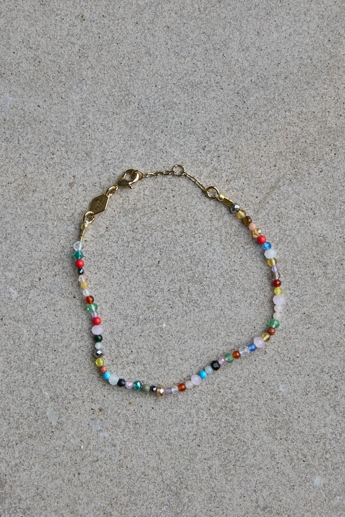 Perlearmbånd fra Anni Lu med en vakker miks av edelstener og krystaller, som gir et unikt og iøynefallende uttrykk. Lås og kjede er laget av 18-karat gullbelagt sterlingsølv. PM Mix-armbåndet kan brukes alene for en enkel look eller kombineres med andre Anni Lu-armbånd for en mer personlig og leken stil.
