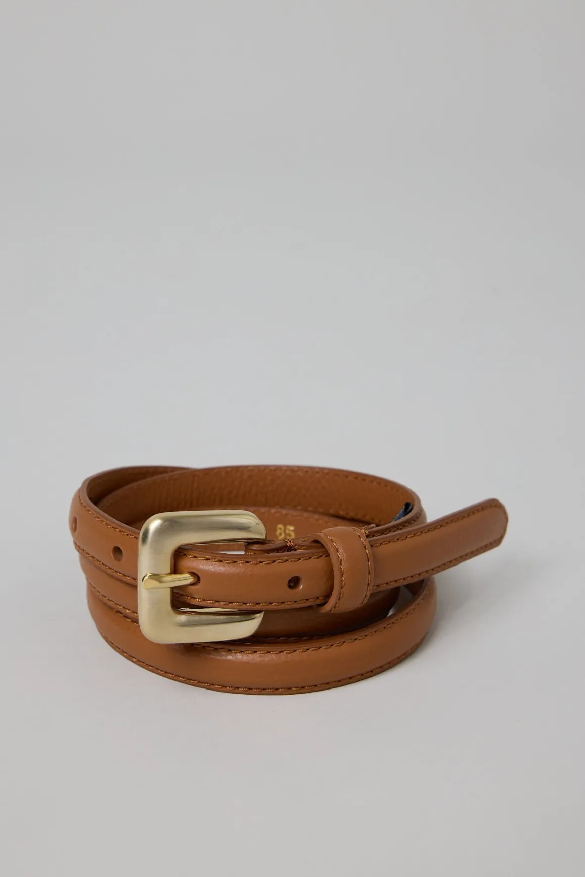 Smalt skinnbelte med gullfarget spenne fra italienske Sergio Gavazzeni. Sergio Gavazzeni er kjent for sin høye kvalitet, og håndverket deres skiller seg ut ved å gi klassiske design en ny vri – noe som tydelig kommer frem i dette beltet. Gloriosa er allsidig og kan brukes både til jeans eller for å fremheve midjen over en kjole eller jakke. Dette er en investering som varer år etter år!