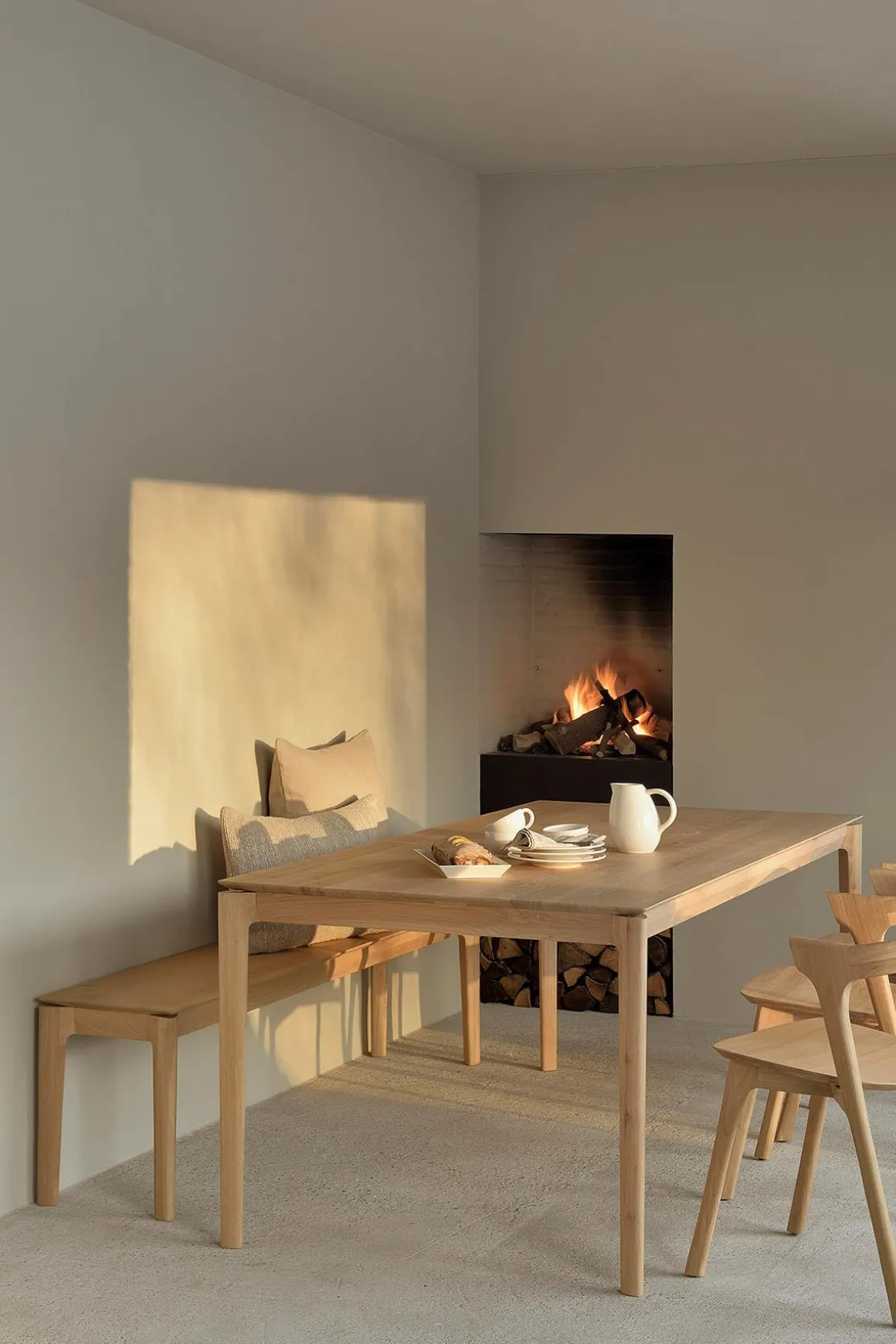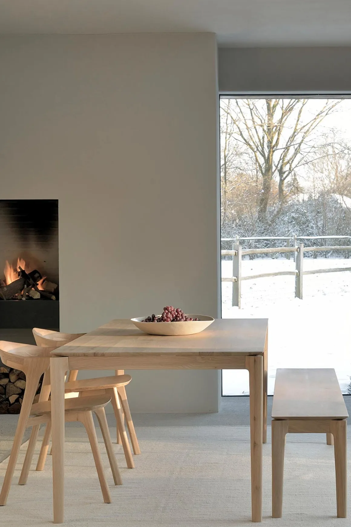Bok benk i oljet eik fra Ethnicraft, designet av Alain van Havre. Benken har den perfekte balanse mellom skulpturell eleganse og solid håndverk, med et stødig og moderne uttrykk i lunt, oljet eiketre. Perfekt i kombinasjon med Bok spisebord, enten hjemme eller hytta. Benken kommer i 4 forskjellige størrelser og også i sortlakkert eik.