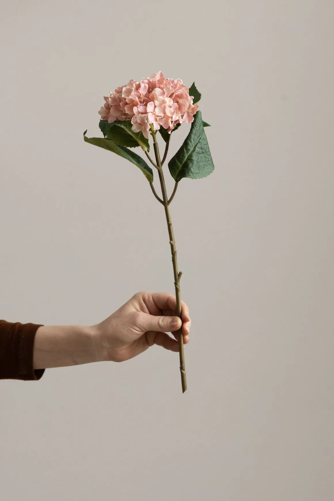 Rosa Hortensia fra Mr Plant er en vakker, naturtro blomst som gir hjemmet ditt et tidløst og frodig preg. Med realistiske detaljer og blader i rosa og grønt, passer denne blomsten perfekt som en del av en bukett, i en vase alene, eller som dekor i et større blomsterarrangement.