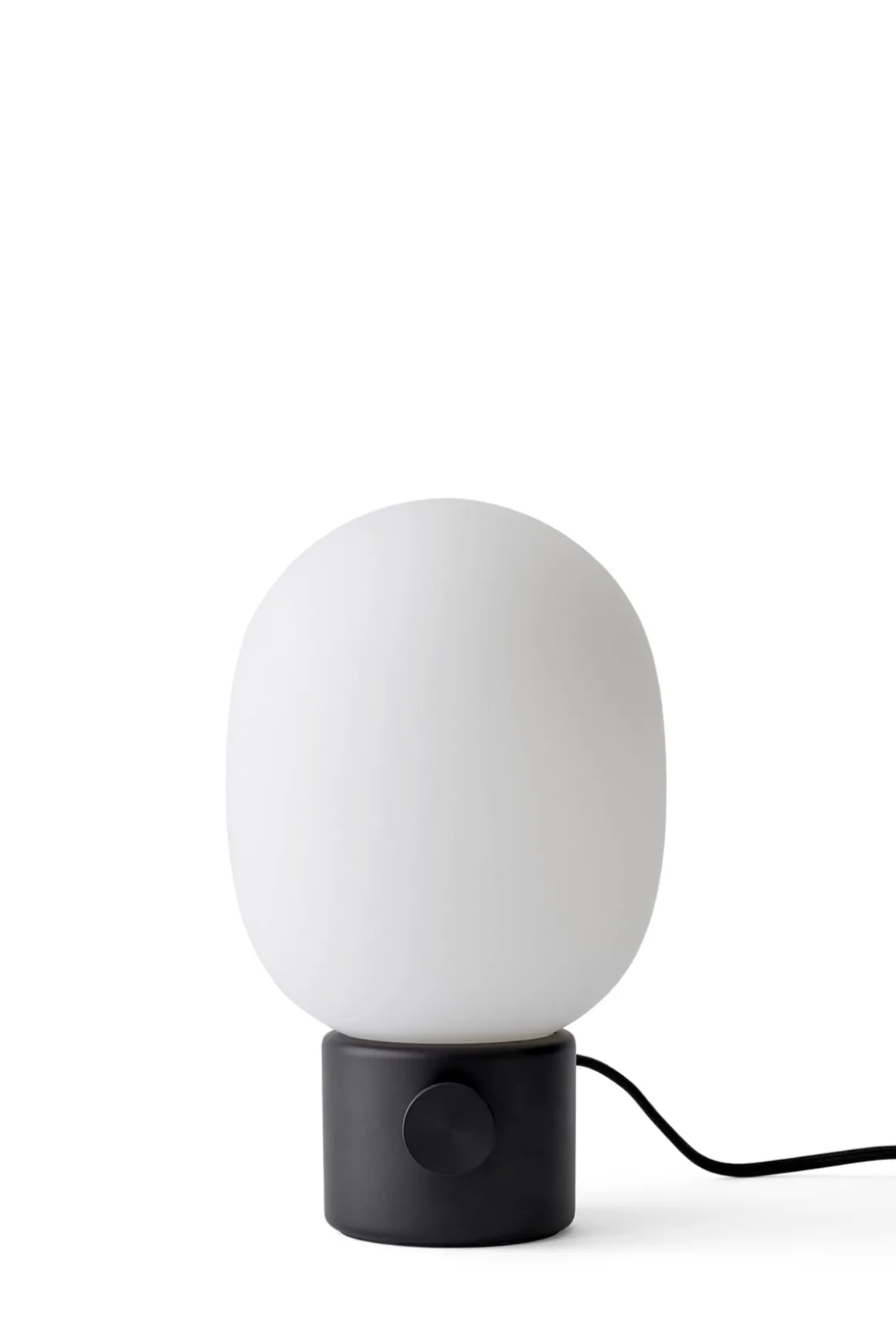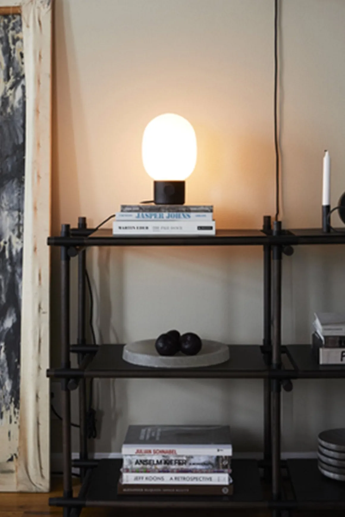 Stilfull og minimalistisk bordlampe designet av Jonas Wagell bestående av en glasskuppel i opalglass og base av sort metall. Lampen har en industriell bryter av sort metall med dimmer, mens den ovale kuppelen bidrar til et mykt lys som passer godt på både bord og skrivebord, på kommode, bokhylle og i vinduskarmen. Den har en 2 meter lang, sort tekstilledning som følger med, lyspære må kjøpes utenom.