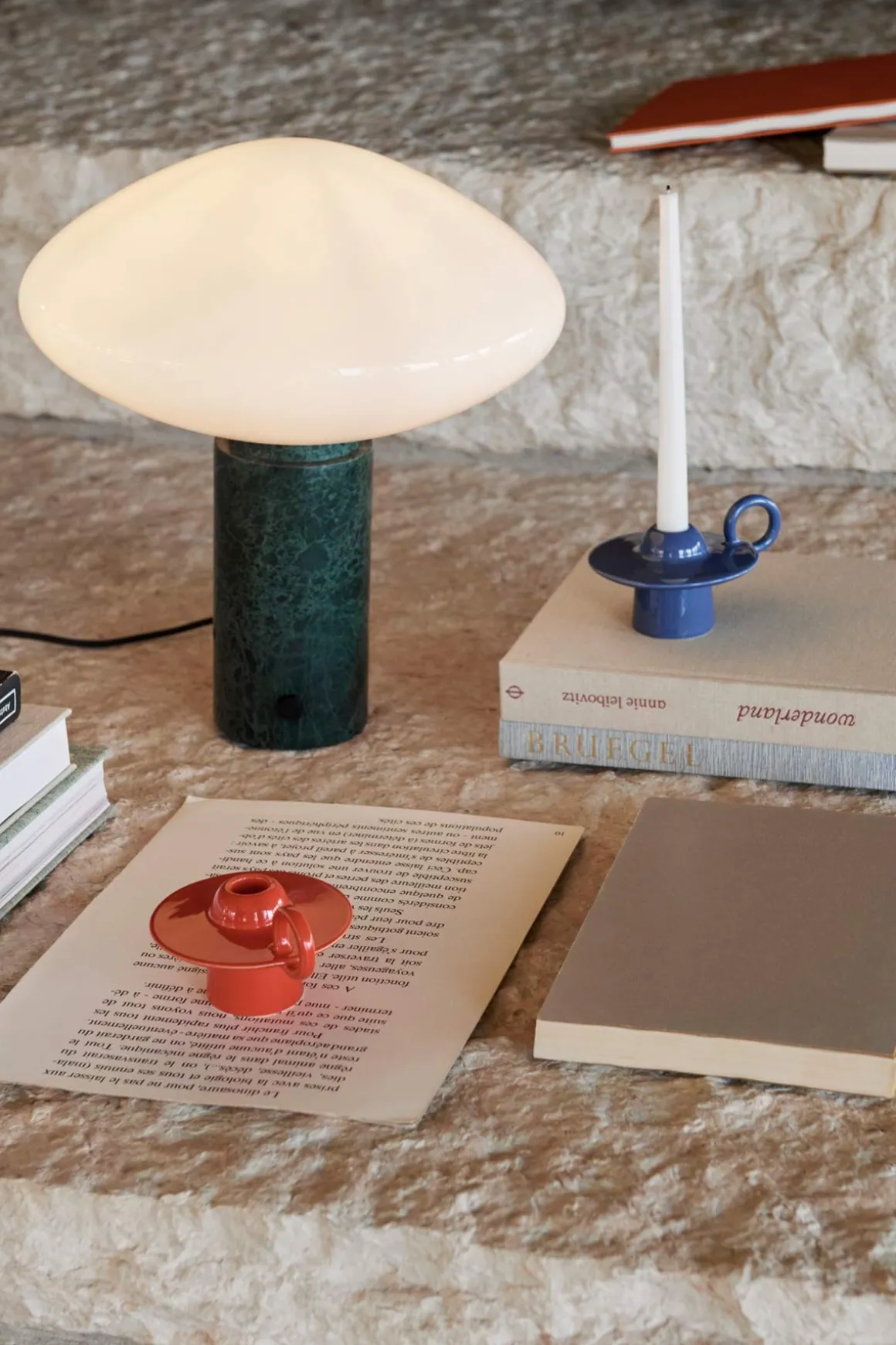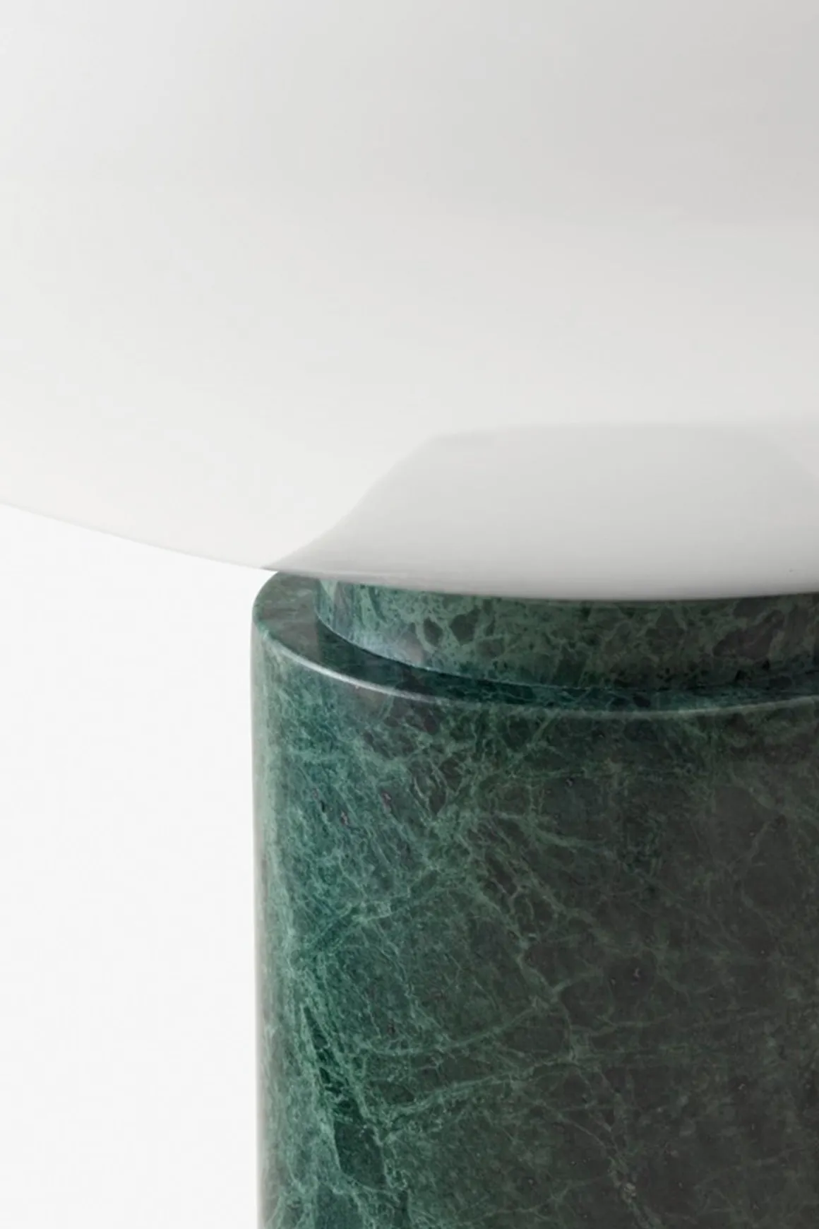 Mist bordlampe er en iøynefallende lampe med opalglass og base i grønn Guatemala Verde marmor. Lampen er designet av det København-baserte designstudioet All the Way to Paris for u0026amp;Tradition. Mist er en serie med taklamper i to størrelser samt denne bordlampen, og er inspirert av det varme, diffuse lyset fra morgenlyset som skinner gjennom disen. Serien vil gi et rom dybde i stedet for å være for tøff og kan passe inn i mange rom. Mist er laget av munnblåst opalglass, og har en tykk marmorsøyle med en praktisk, liten dimmerbryter. Bruk den i stua, på et sidebord, på kontorpulten eller som nattbordslampe.