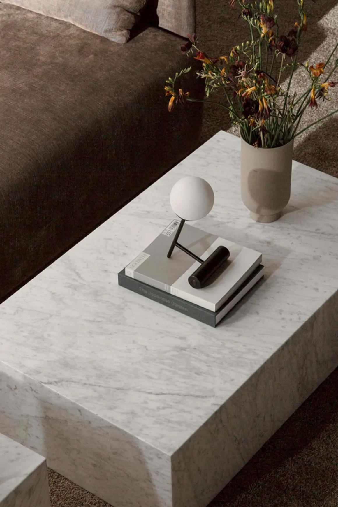 Oppladbar og minimalistisk Phare Portable-bordlampe i pulverlakkert aluminium. Inspirert av og designet for leilighet nr. 50 på Le Courbusiers ‘Cité Radieuse’ i Marseille, med en ide om å lage et fullstendig resirkulerbart produkt som ville bli en allsidig følgesvenn i hverdagen. Lampen er laget av pulverlakkert aluminium for 100% resirkulerbarhet, holdbarhet og letthet, mens lampens skjerm er laget av injisert plast, som gir langsiktig holdbarhet og sikkerhet (både for lampen og brukeren). Designet er et resultat av en reduksjonsprosess ved å utelate overflødige elementer, slik at det kun er funksjonaliteten som dikterer formspråket og holder det enkelt og stramt. Siden lampen er oppladbar, kan Phare Portable bli med overalt der den trengs. Bruk den på steder du trenger lys, men ikke har strømuttak, som for eksempel i bokhyllen, ved siden av sengen eller på et sidebord. Den kan også tas med ut på balkongen, terrassen eller i hagen for å skape lun og koselig stemning når mørket faller på.
