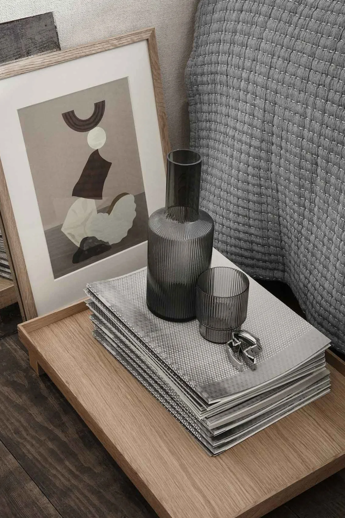 Bon-brett av eik fra Ferm Living. Brettet har tatt inspirasjon fra japansk estetikk med sitt enkle uttrykk. Brettet har fire små føtter og synlige skjøter på hjørnene. Laget med kjærlighet til klassisk håndverk, og solid eik gir deg et holdbart og klassisk brett til morgenkaffen. Kan også brukes til dekorasjon på stuebordet, til oljer og krydder på kjøkkenet eller til servering.