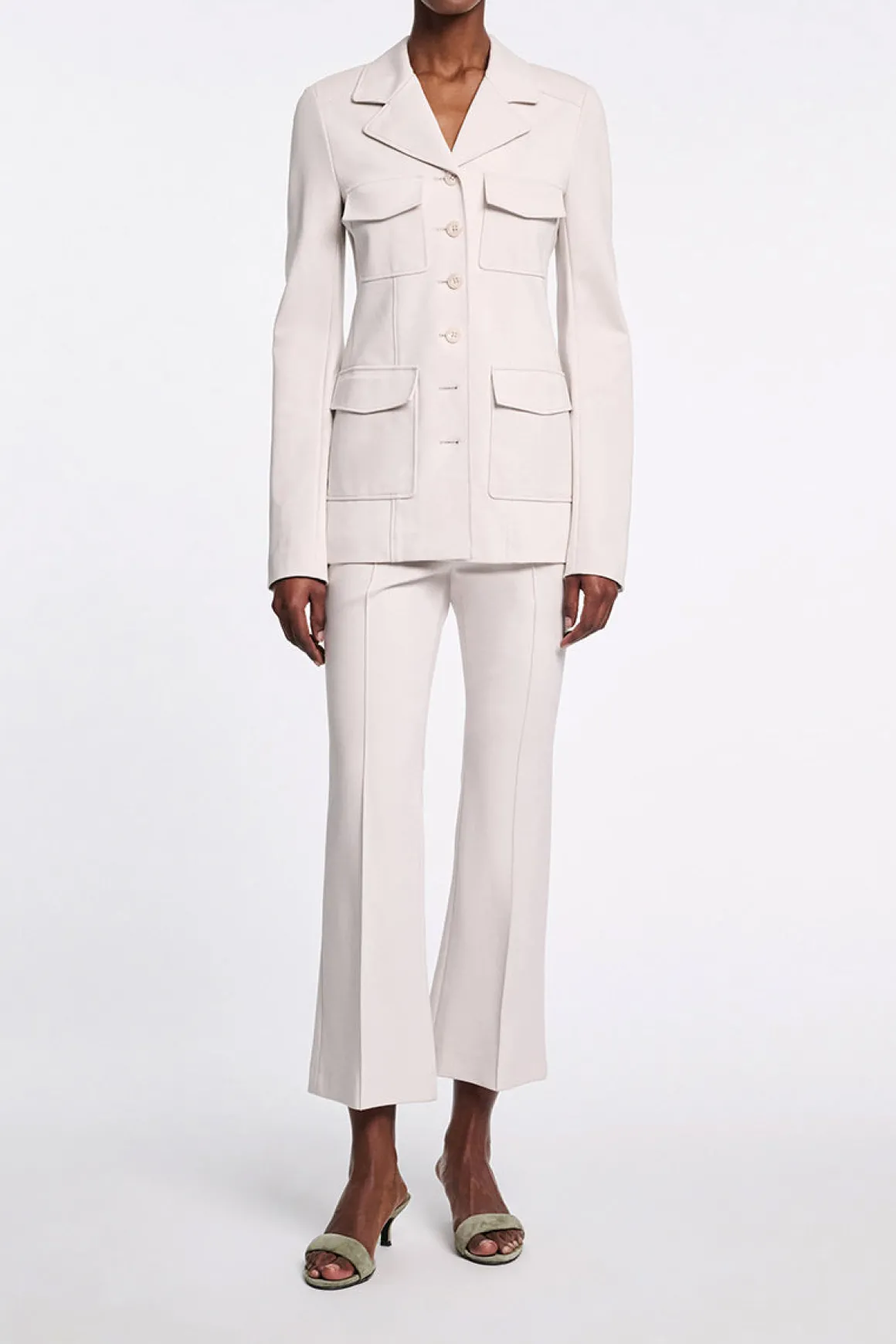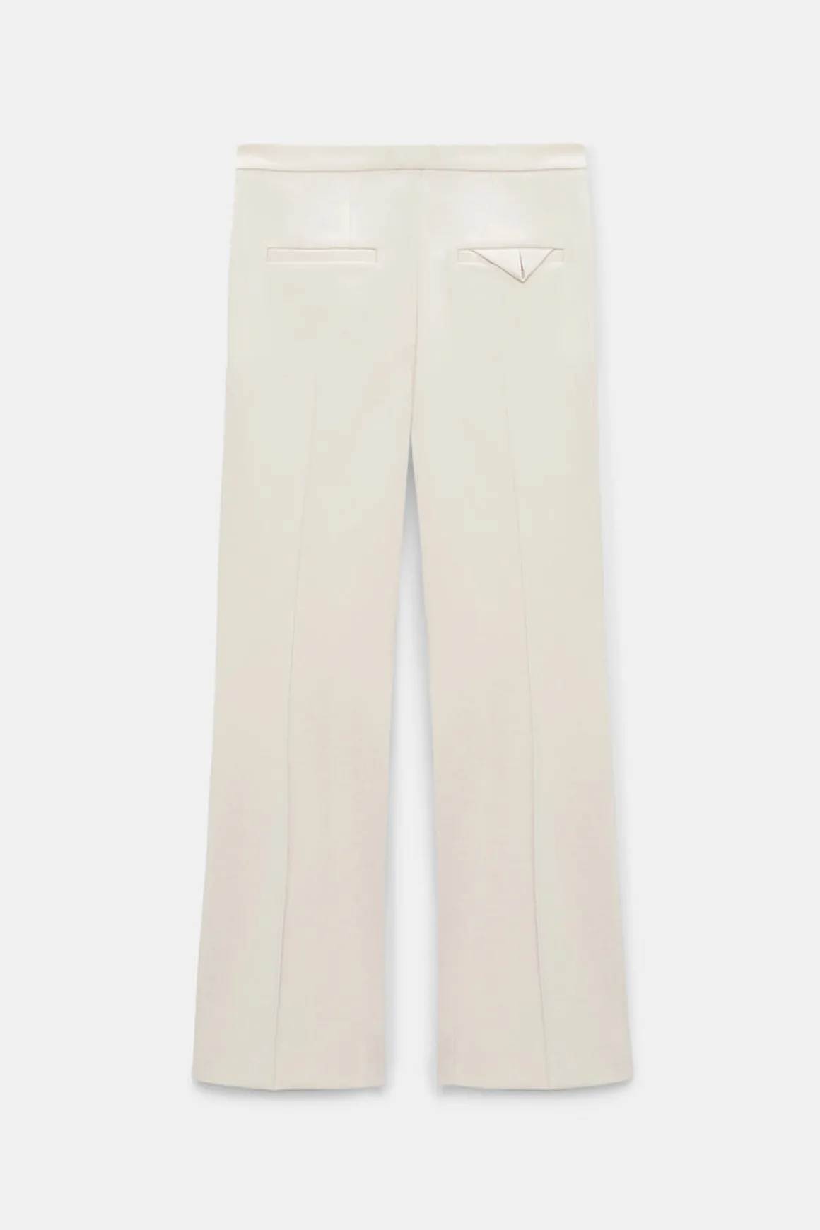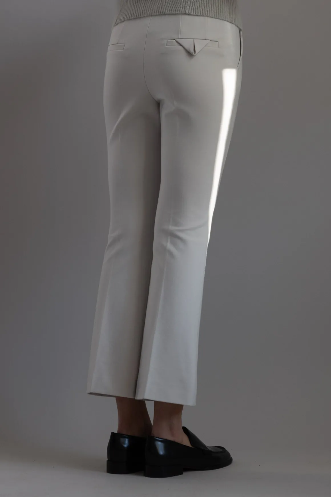 Emotional Essence bukse fra Dorothee Schumacher. Emotional essence er en sofistikert bukse i myk og smidig Punto Milano-stoff som kombinerer komfort med en stilren silhuett. Det croppede snittet og den lett utsvingte ankelen gir en moderne vri, mens de pressede leggene foran tilfører et skreddersydd preg. Buksen har sidelommer for funksjonalitet og passepoilerte baklommer for en gjennomført finish. Den sitter naturlig i midjen og lukkes med hekte og glidelås foran. Perfekt både til jobb og fritid – en allsidig favoritt som enkelt kan styles opp eller ned.