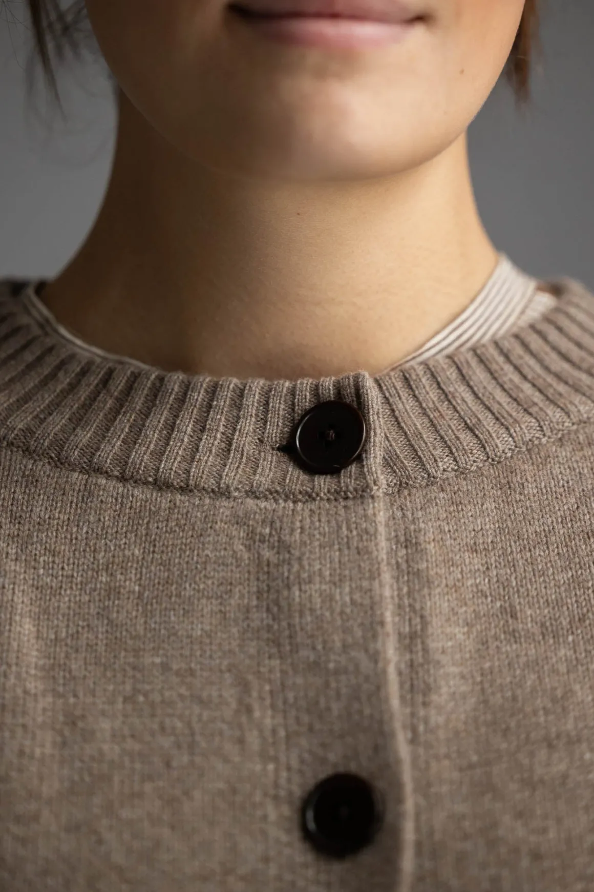 Eden-cardiganen fra Toast er en av merkets mest populære plagg – en tidløs klassiker som raskt blir en favoritt i garderoben. Strikket i en myk blanding av merinoull og resirkulert kasjmir, gir den en perfekt balanse mellom letthet og varme. Raglanfellingen sørger for at cardiganen legger seg pent over skuldrene, uansett bredde, og passer dermed flere. Avrundede ermer med ribbestruktur skaper en myk, flatterende silhuett, mens store corozo-knapper tilfører naturlig tekstur. Med sin gjennomtenkte passform og tidløse design er dette et plagg du alltid vil vende tilbake til.