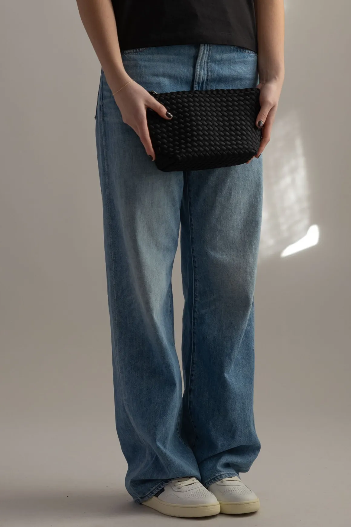 Klassisk clutch i fargen Onyx / sort i håndvevd neopren. Denne geniale mappen er vanntett og perfekt til å ha sminke, nøkler eller lommebok i ,når du har en åpen veske. Kan også brukes som en toalettmappe.