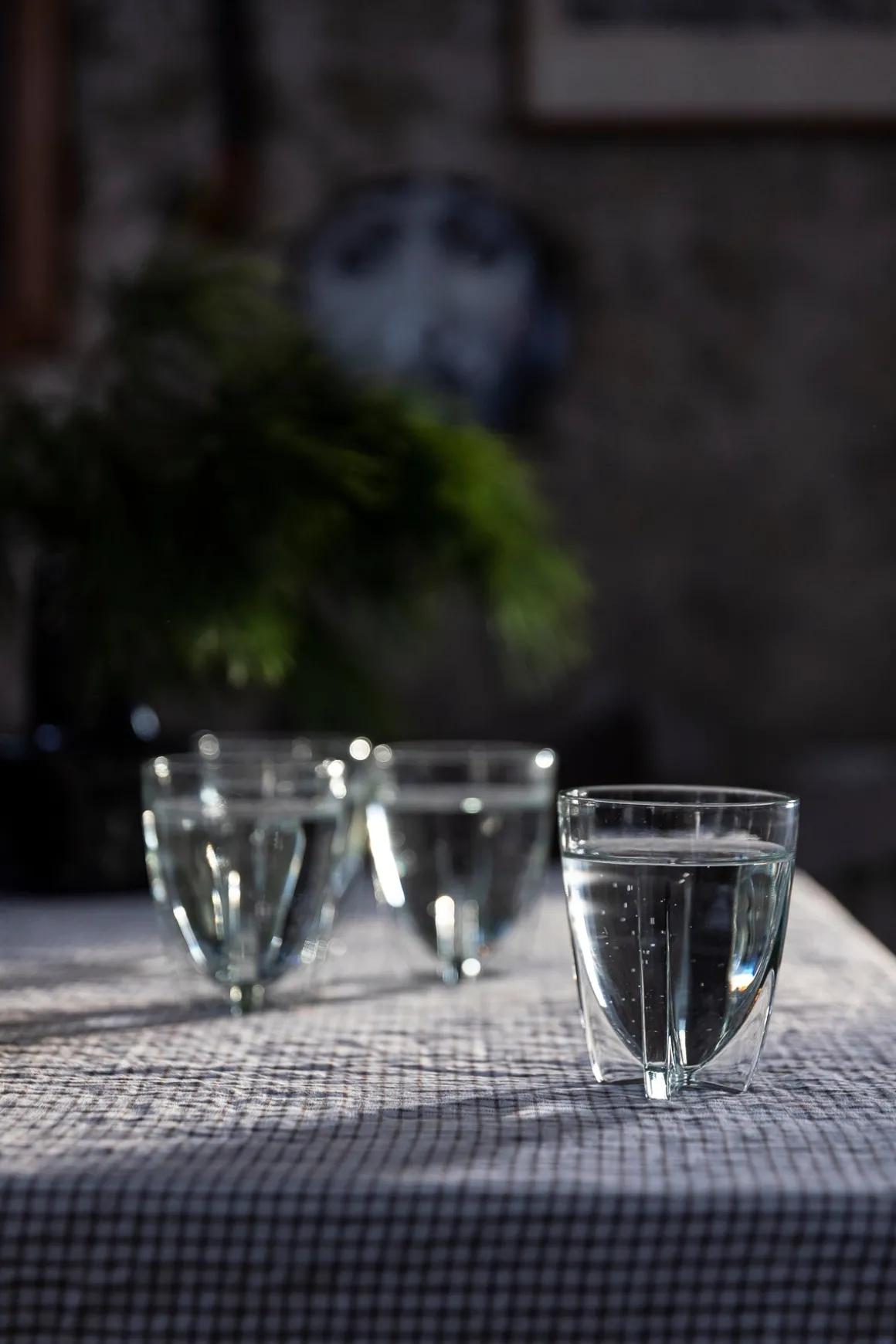 Dora-glass i lysegrønnt designet av Ann Demeulemeester for Serax. Glasset har et unikt design med en ren, avrundet form som hviler på en solid base med fire små bein formet i et kors. Korset smelter sammen med resten av glasset til en særegen form. Det perfekte glasset til alle slags formål!