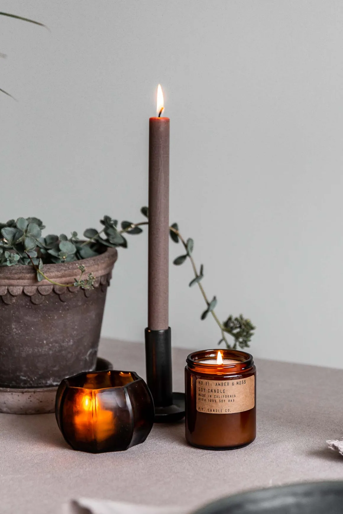 Duftlys fra California-baserte P. F. Candle Co. med duft av rav og mose. Duften åpner jordaktig og maskulin, mens noter av søt lavendel og frisk appelsin balanserer duften.