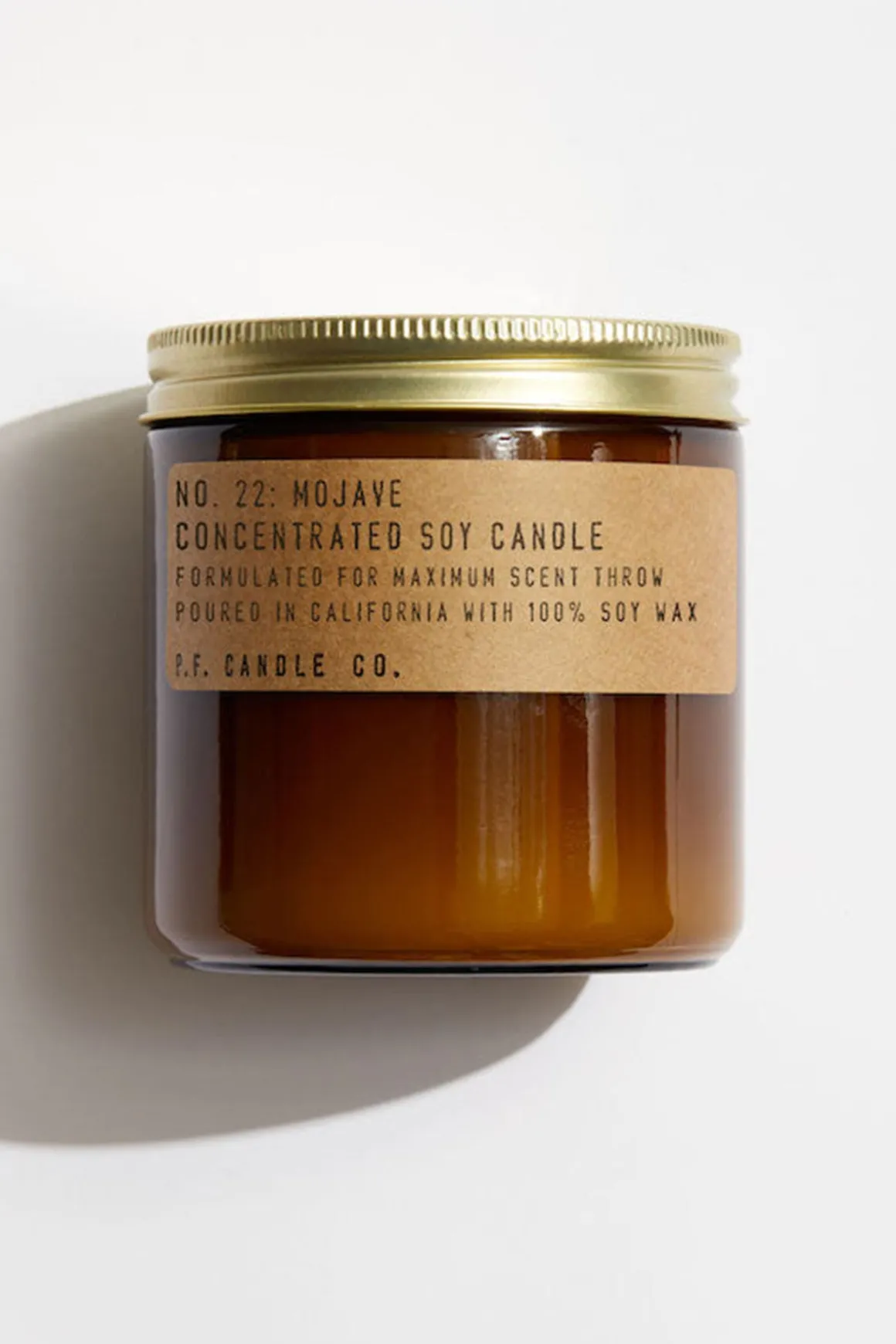 Duftlys av naturlig soyavoks og parfymeoljer av ypperste kvalitet i stilige apotekerglass fra Los Angeles-baserte P. F. Candle Co. No22 Mojave har en forførende duft av Californias ørkenlandskap. Toppnoter av kreosot, tørr ørkenluft, chaparral, ørkensalvie, som følges av gyllen valmue, rose og hvit lavendel, og så rundet av med bunnoter av sedertre, hvit musk og sandeltre. Dette er en perfekt unisex-duft som brenner i hele 40-50 timer.