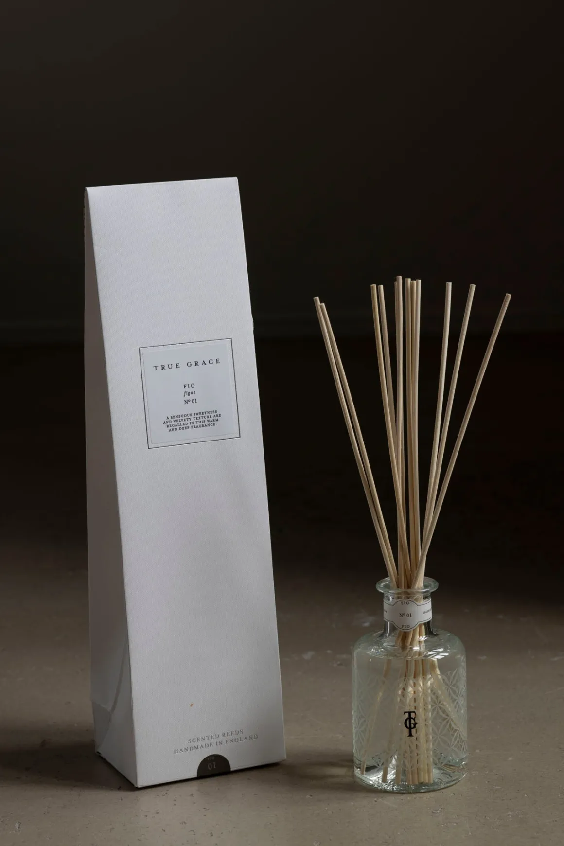 Luksuriøse duftpinner fra engelske True Grace. Fig er inspirert av livet på landet og er en del av deres «Village»-serie. En fruktig duft med noter av sedertre, søt fiken og kassis. Dette er en super venninnegave, innflytningsgave eller litt hverdagsluksus til deg selv. Kommer i en nydelig apotekerglassflaske med trepinner som varer i opptil ti uker.