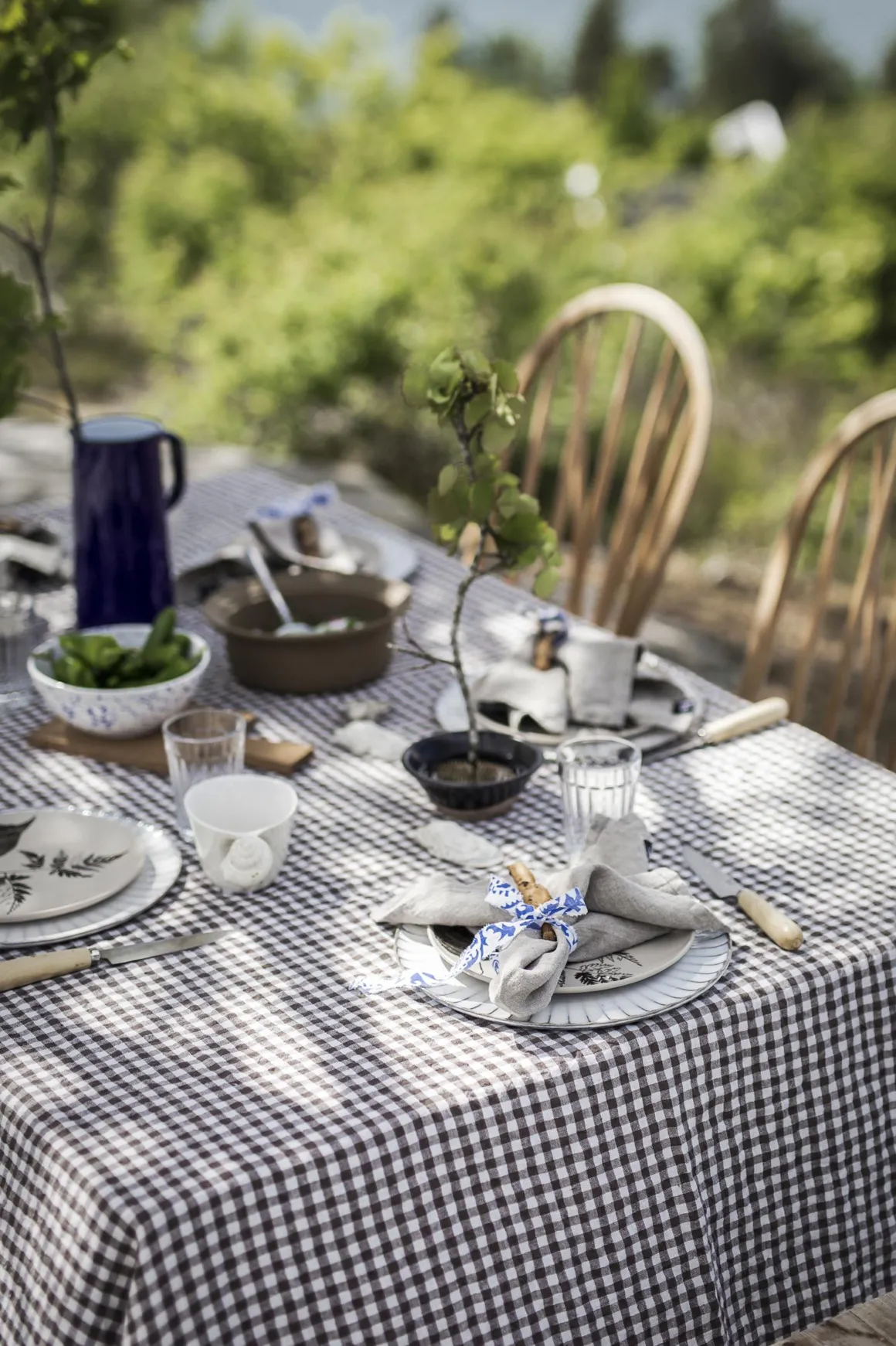 Linge Particulier har en kvalitet som ikke kan kopieres, og den litt krøllete teksturen etter vask gjør den bare enda vakrere – stryking er ikke nødvendig! Denne duken er like perfekt hjemme som på hytta, og er et produkt vi er stolte av å ha i Bolina.