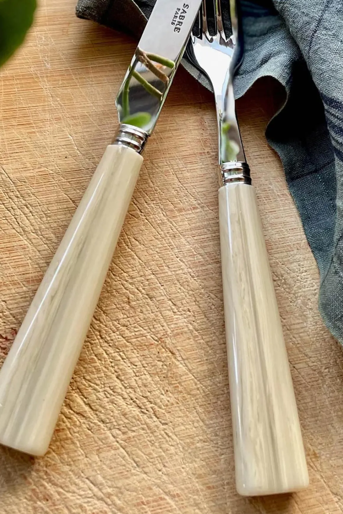 Gaffel fra franske Sabre, en del av Nature-serien som viderefører det ikoniske designet fra den populære ICÔNE-serien fra samme merke. Håndtaket, som imiterer horn, gir gaffelen et varmt og naturlig uttrykk som skiller seg ut på bordet. Kombinasjonen av rustfritt stål og naturinspirerte detaljer gjør at Nature-serien passer perfekt til enhver borddekking. Enten det er til en hverdagsmiddag eller en spesiell anledning, tilfører gaffelen fra Nature-serien en særegen sjarm som gir bordet et unikt og personlig preg.