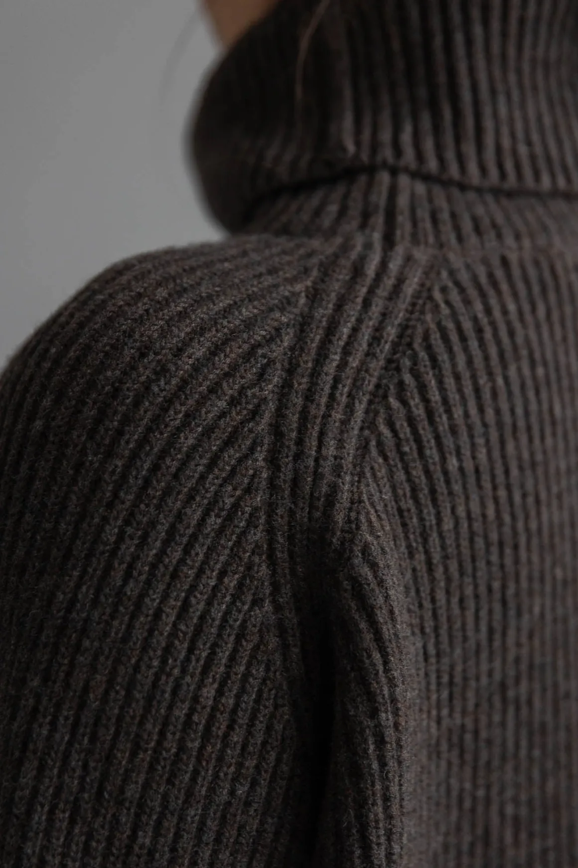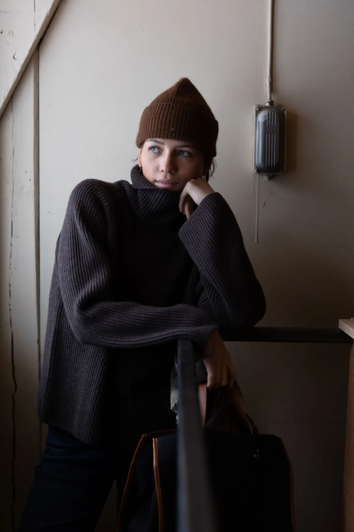 Chunky høyhalset genser i 100 % merinoull fra MKDT. En nydelig brunfarge, løs passform og lange, vide ermer gjør den perfekt til kjølige dager. Denne genseren har blitt en signatur hos MKDT og er et flott tilskudd til basegarderoben som holder deg varm gjennom hele høst- og vintersesongen.