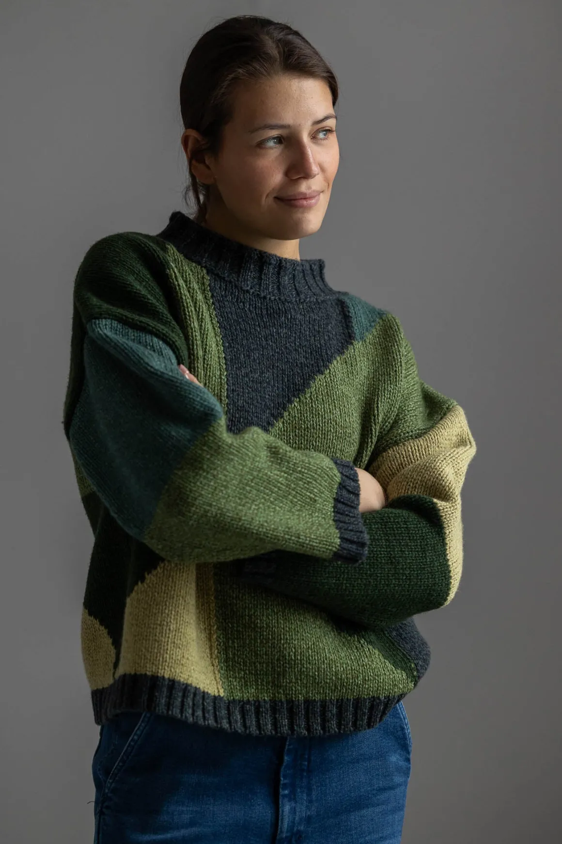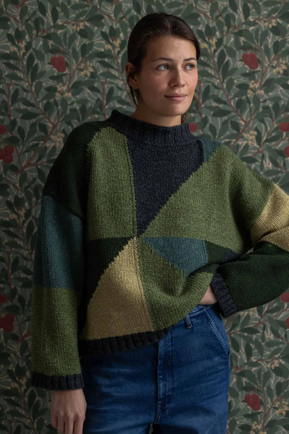 En tykk og varm genser fra Toast, laget i en blanding av ull og organisk bomull. Det fargerike blokkdesignet er inspirert av vintage drager og gir plagget et unikt preg. Genseren har vide, firkantede ermer og en ribbestrikket crew neck som rammer inn halsen. Ribbekanter på ermer og nederkant gir en gjennomført finish. Perfekt for kjølige dager, enten alene eller som lag-på-lag.