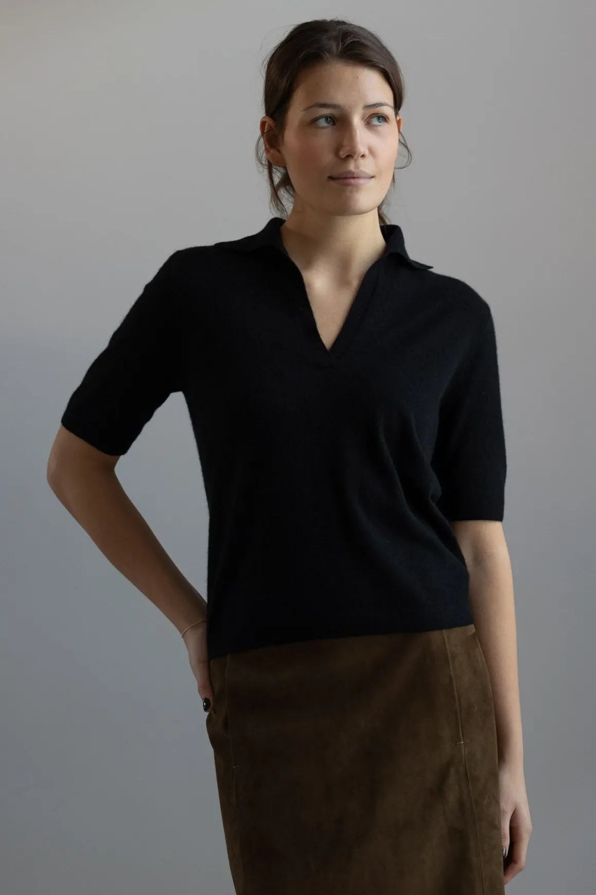 Genser – Silk Blend S/S Polo fra Vince. Et perfekt plagg for sesongovergangen – denne kortermede polosweateren er laget av en ultramyk og luftig blanding av kasjmir og silke. En tidløs og elegant klassiker som passer like godt alene som under en blazer eller cardigan.