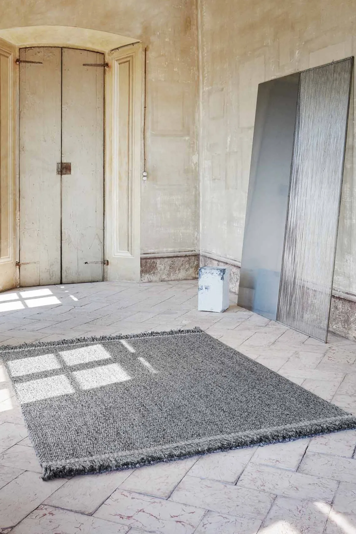 Elmo gulvteppe fra Linie Design i fargen Dark Grey, designet av Gitte-Annette Knudsen. Elmo bruker en blanding av naturlige toner for å skape en subtil marmor-effekt som gir dimensjon og dybde til teppet. Laget av tykk, kvalitetsull fra New Zealand med frynsedetaljer som tilbyr uovertruffen komfort og holdbarhet. Mykheten og varmen er smeltet sammen med kjølig nordisk estetikk og resulterer i et