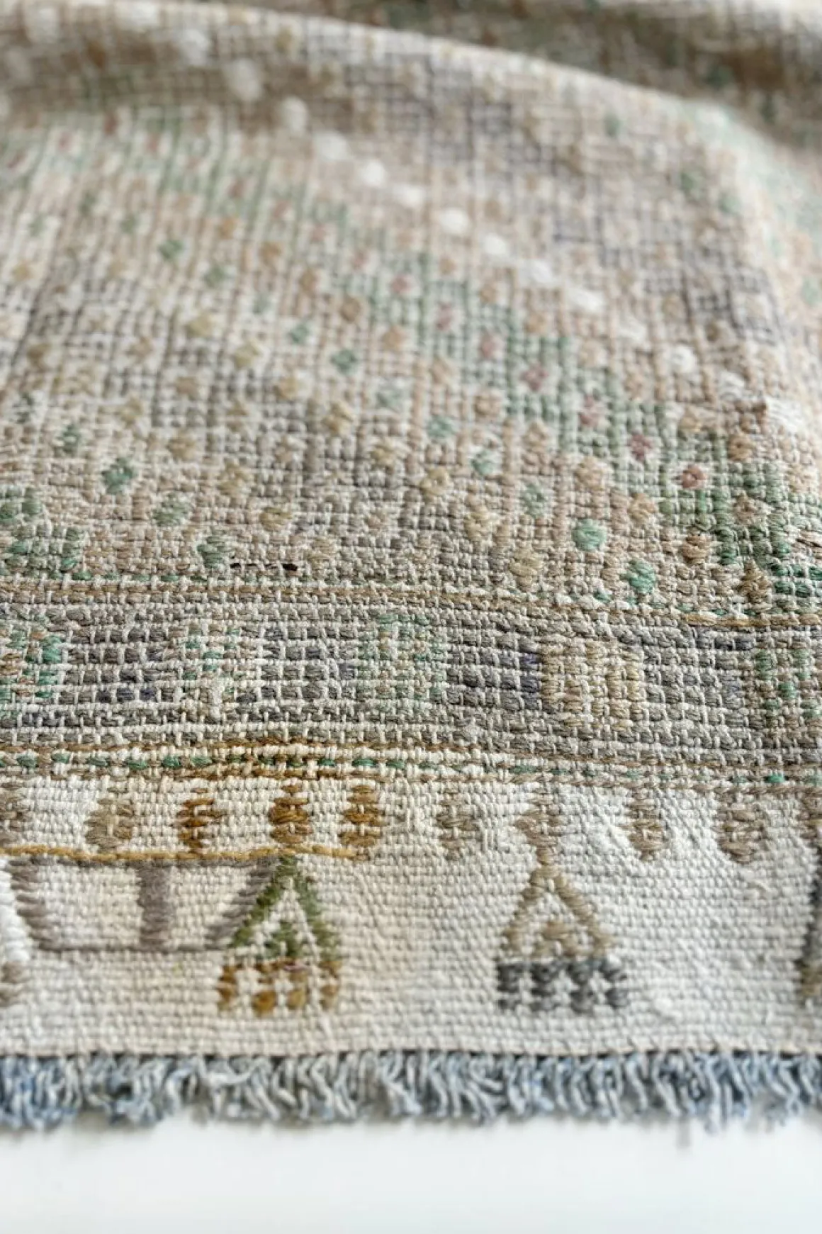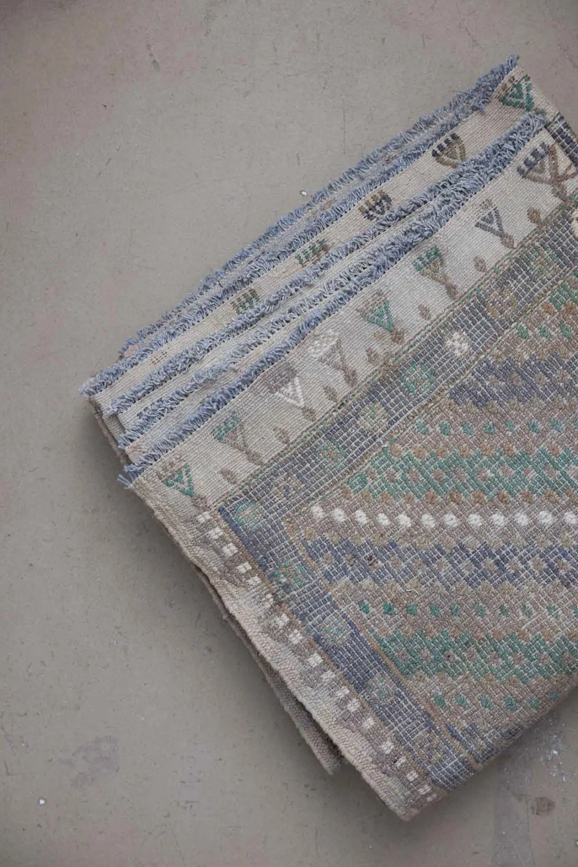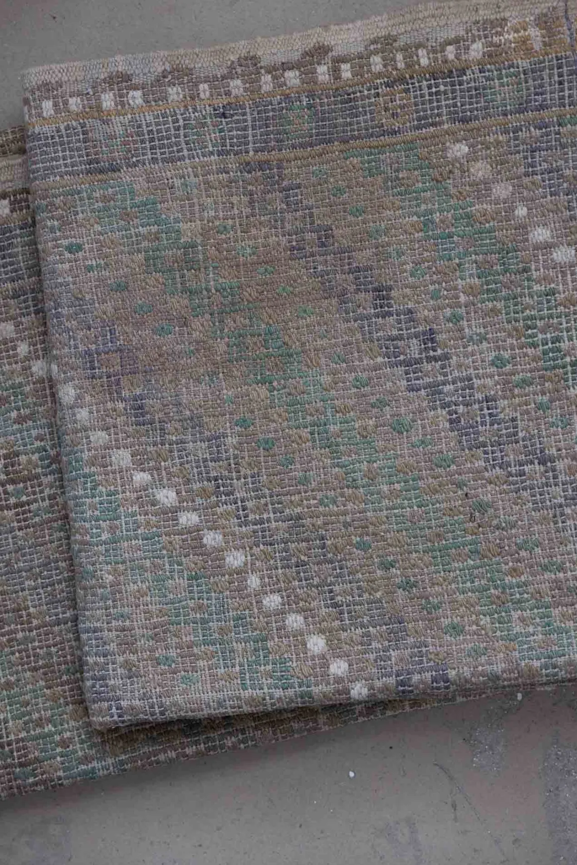 Unikt, vintage kelimteppe i ull fra Brandts Indoor. Gulvteppet er et originalt anatolsk teppe, håndlaget i Tyrkia og deretter renset og restaurert. Kelimteppene er derfor helt særegne og unike slik at du kan finne det perfekte gulvteppet som ingen andre har. Når en skal gå til innkjøp av gulvtepper er det lurt å velge et teppe som tåler en støyt. Den grove veven, fargekombinasjonene og mønsteret gjør at teppet er godt egnet i rom med mye trafikk, da flekker ikke vil synes så godt. Teppene har en naturlig evne til å motstå smuss og er bærekraftige, naturlige og biologisk nedbrytbare. De naturlige egenskapene til ull gjør teppet anti-allergisk og brannbestandig, noe som bidrar til å skape et trygt og sunt innemiljø. Vær oppmerksom på at det kan forekomme mindre flekker eller reparasjoner på teppene siden de er vintage og restaurert. Tips! Gå til innkjøp av et anti-skli underlagsteppe, så ligger teppet stødig og rett på gulvet.