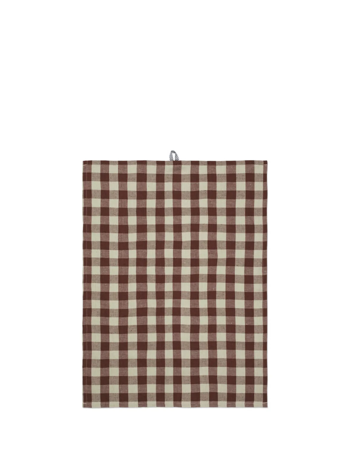 Kjøkkenhåndkle i deilig kanelfarget rutemønster fra Ferm Living. Garnfarget i en kombinasjon av lin og bomull som er vår favoritt når det kommer til kjøkkenhåndklær. Lin har en helt unik evne til å tørke raskt.