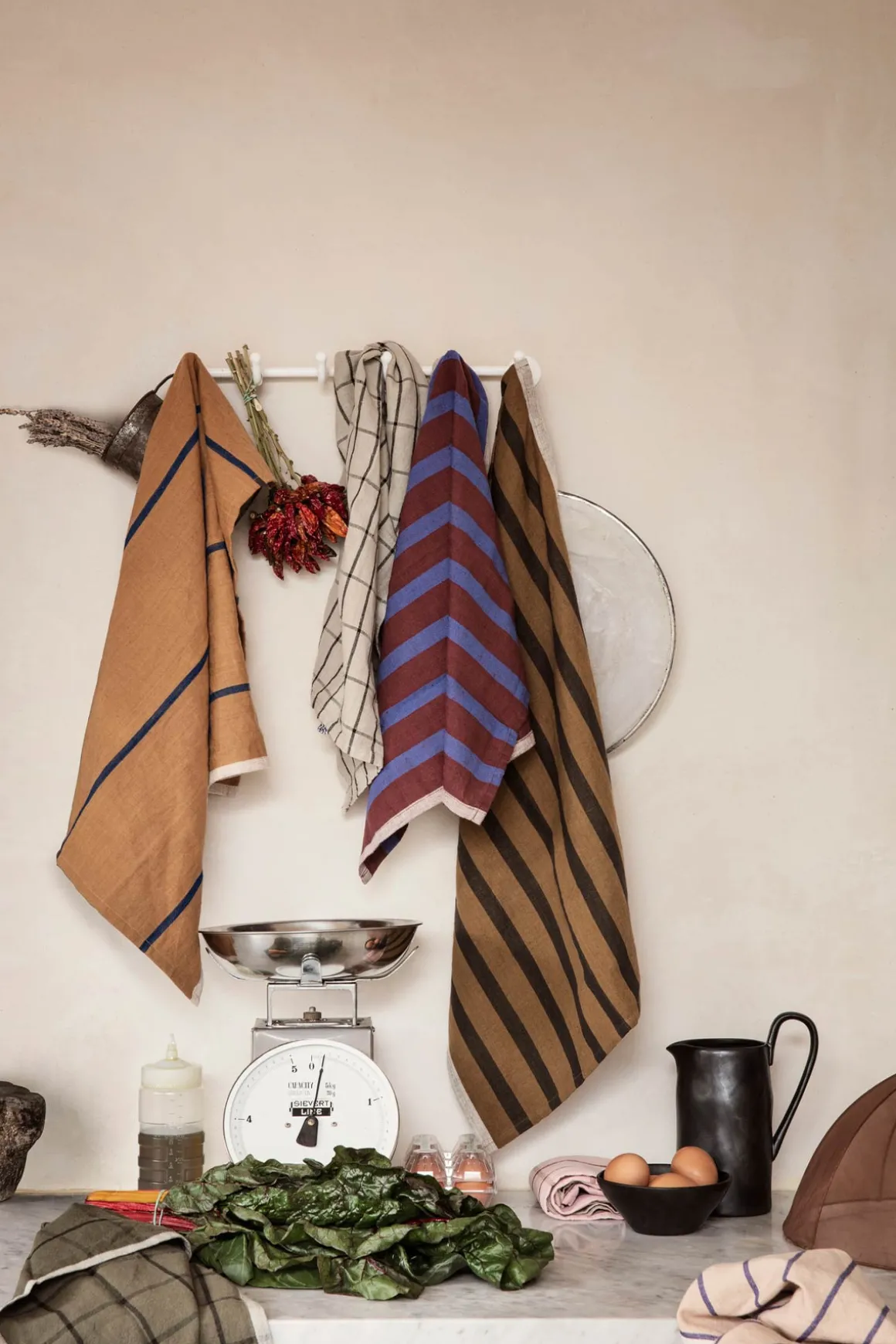 Hale kjøkkenhåndkle fra Ferm Living i en frisk fargekombinasjon i fersken og rødt. Håndkleet er laget i en nydelig kvalitet av naturlig lin og bomull som gjør at vannet absorberes raskere. Hale-serien tilfører en frodig blanding av farger på kjøkkenet ditt og smelter sammen det tradisjonelle med det moderne.