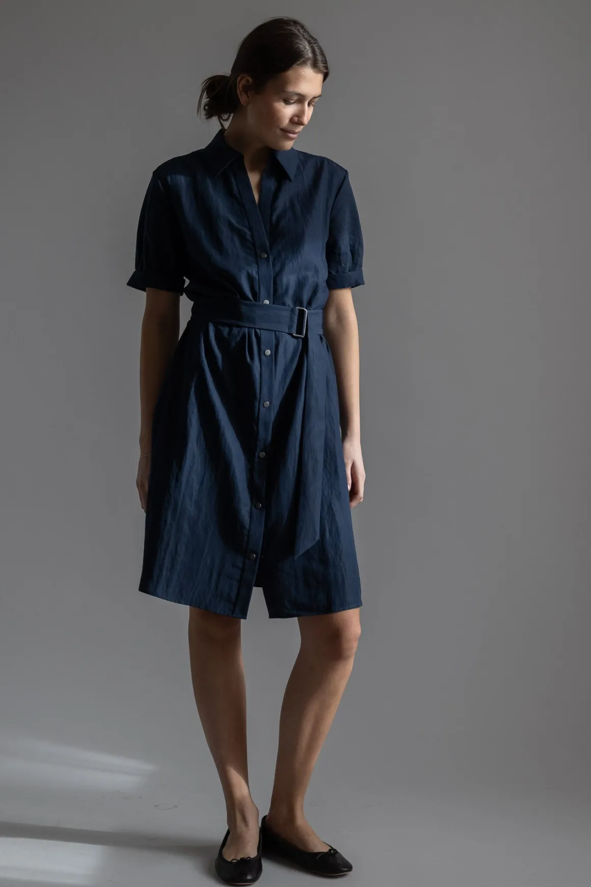 Cuffed S/S Belted Shirt Dress fra Vince er en klassisk skjortekjole med et minimalistisk design, perfekt for både hverdagsbruk og mer pyntede anledninger. Kjolen har korte, oppbrettede ermer, noe som gir den et avslappet uttrykk, mens det fastsydde beltet i midjen skaper en definert silhuett. Passformen gjør at den sitter flatterende på kroppen uten å føles stram, mens knapper fra topp til bunn gir mulighet for justering av utringning og stil. Materialblandingen av 90 % lyocell og 10 % nylon gir et lett og pustende stoff med en myk følelse mot huden.