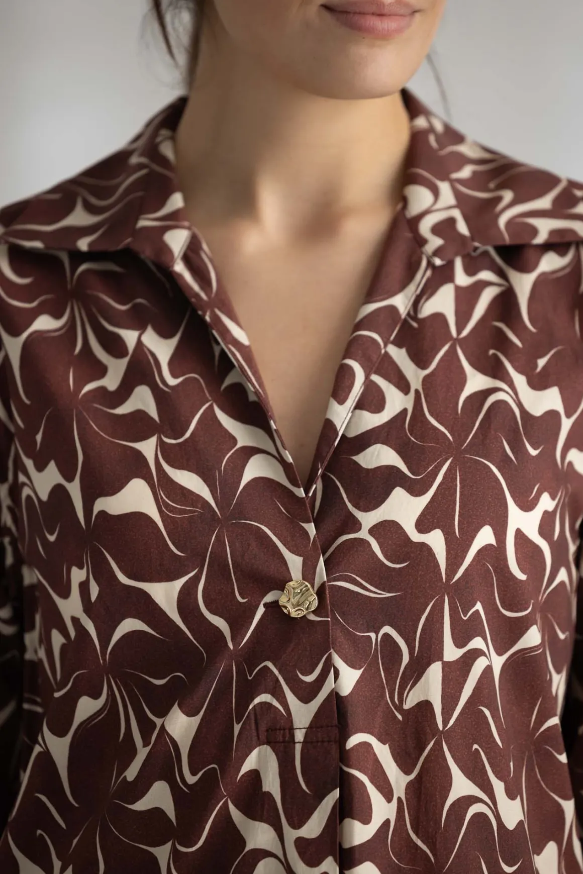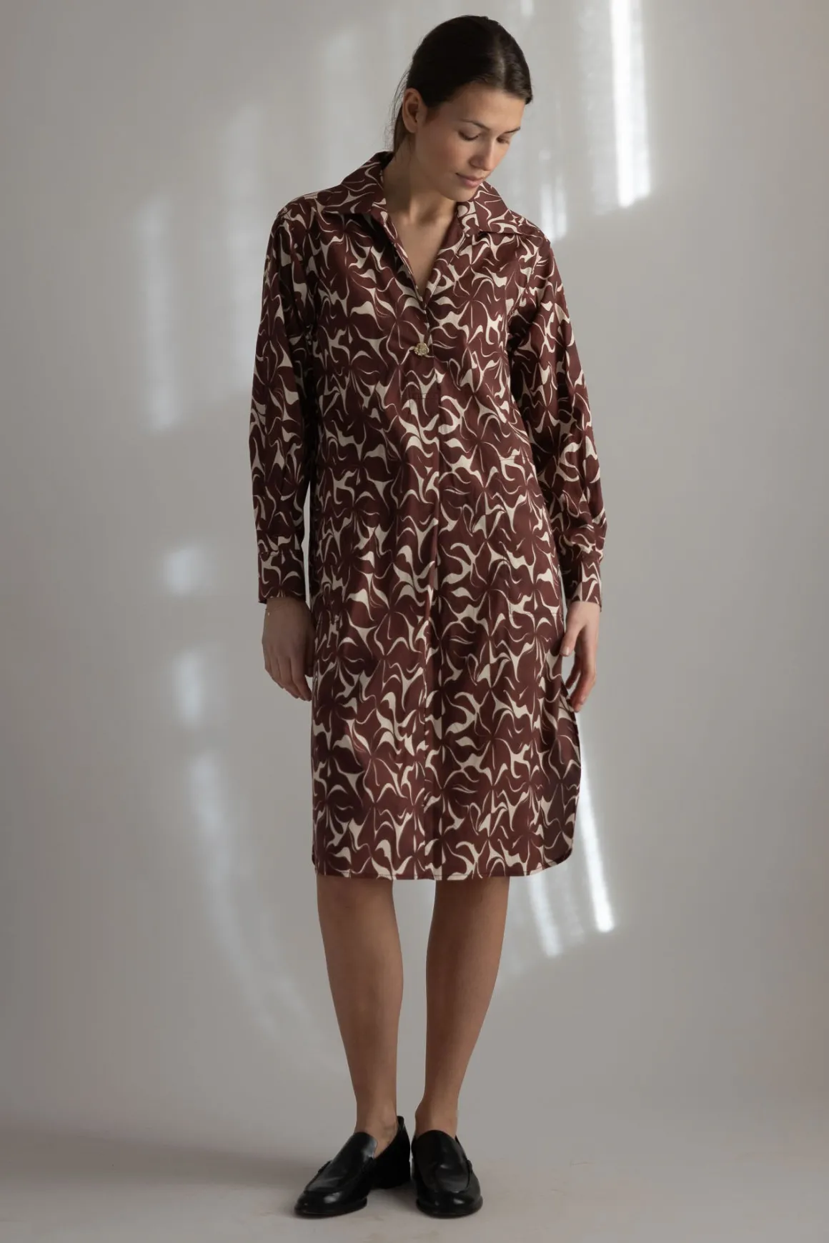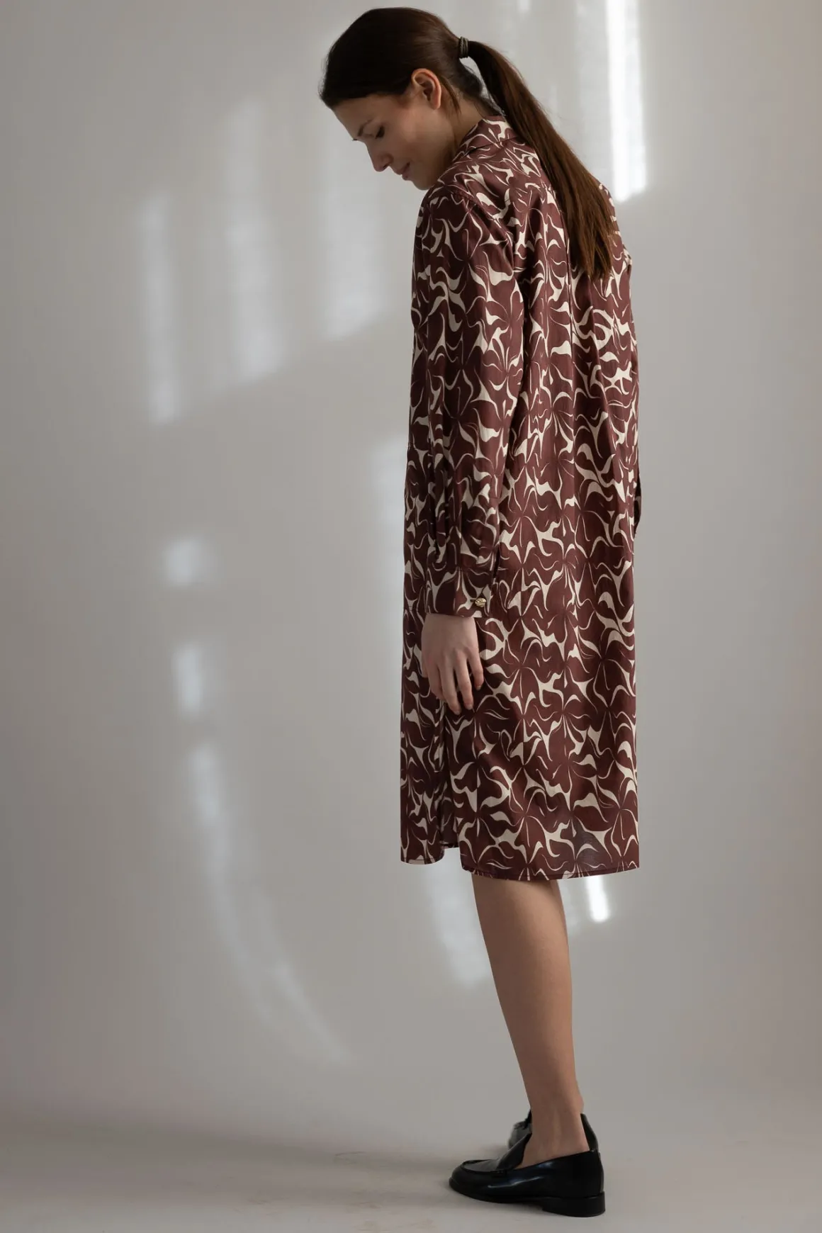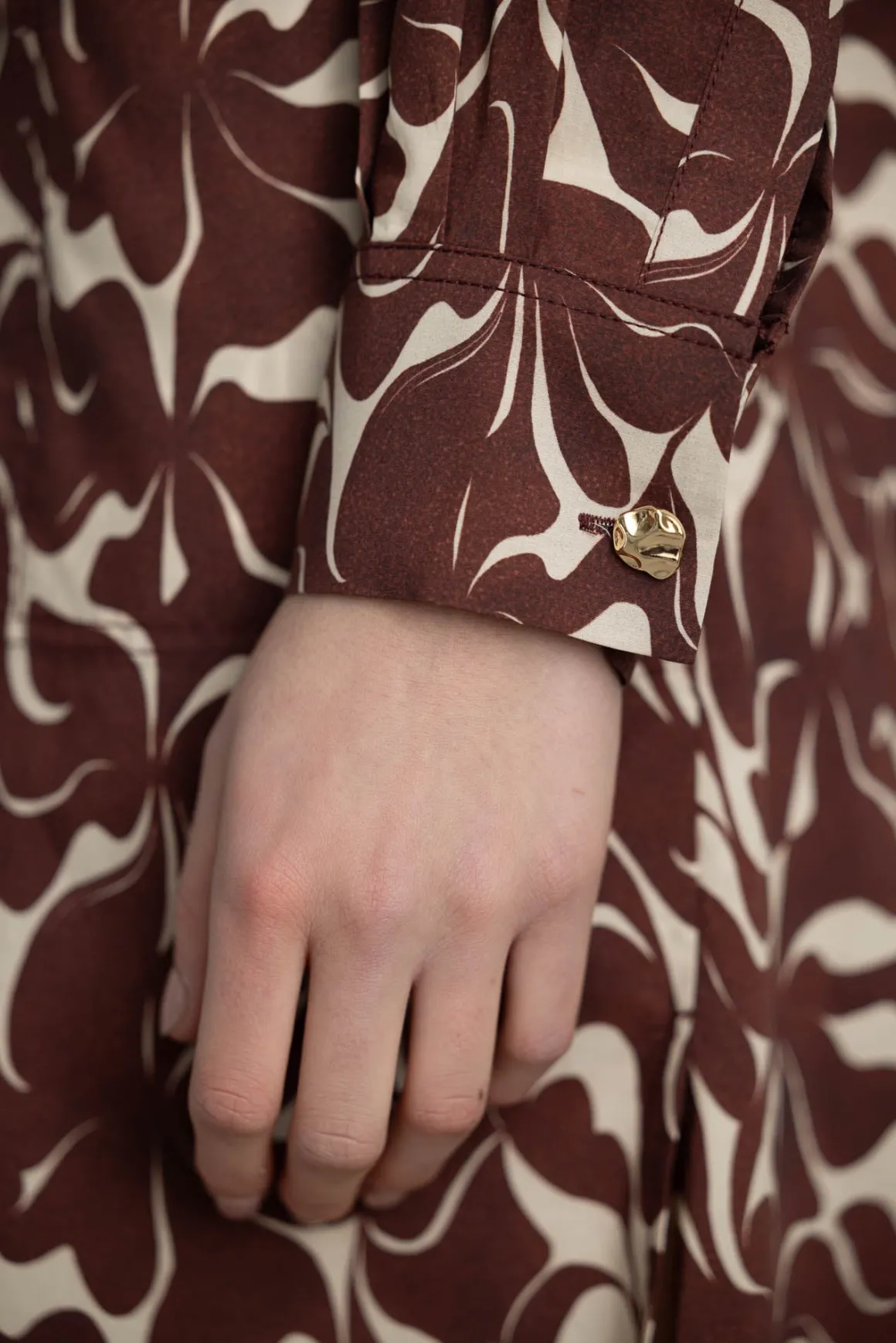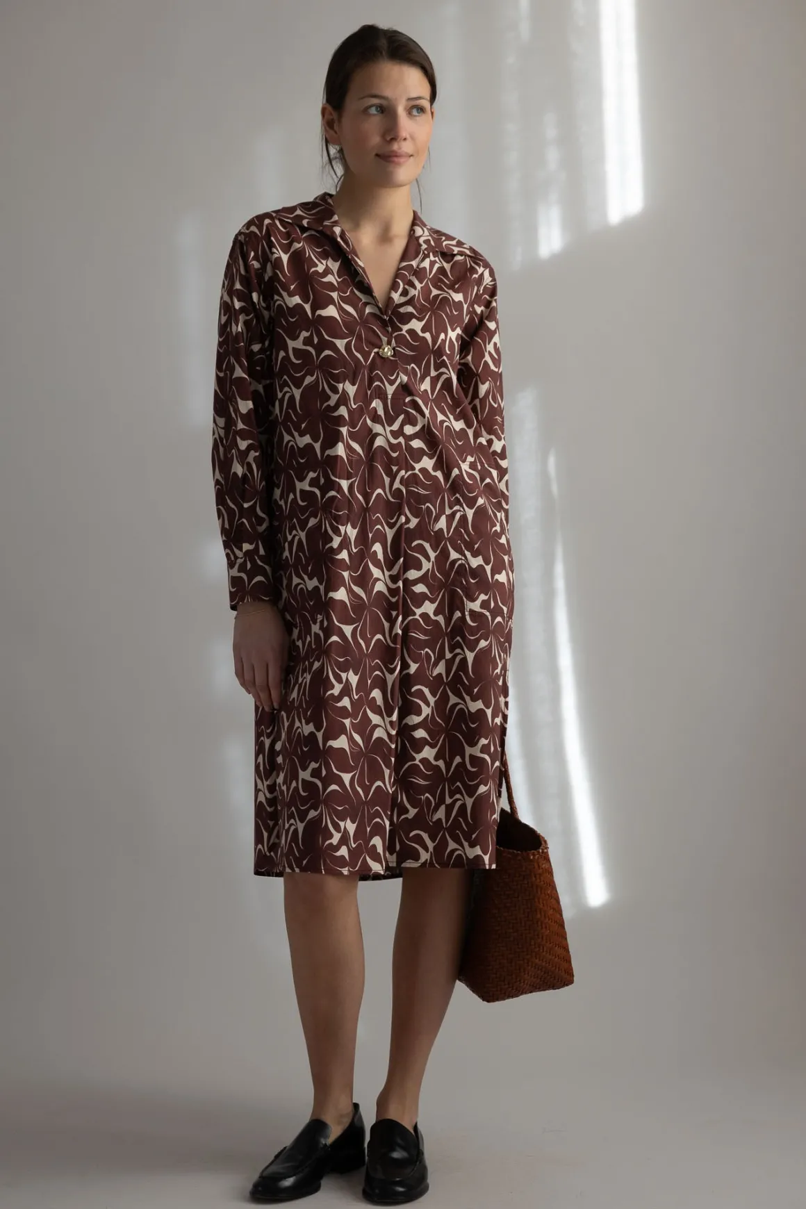 Denne skjortekjolen fra Vanessa Bruno har et unikt og grafisk mønster som vi elsker. Den har en avslappet passform med side lommer, lange ermer og en klassisk skjortekrage. Den diskré knappestolpen foran gir et flatterende snitt, forsterket av en gullknapp. Med sitt originale design og midi-lengde er denne kjolen perfekt for hverdags og fest.